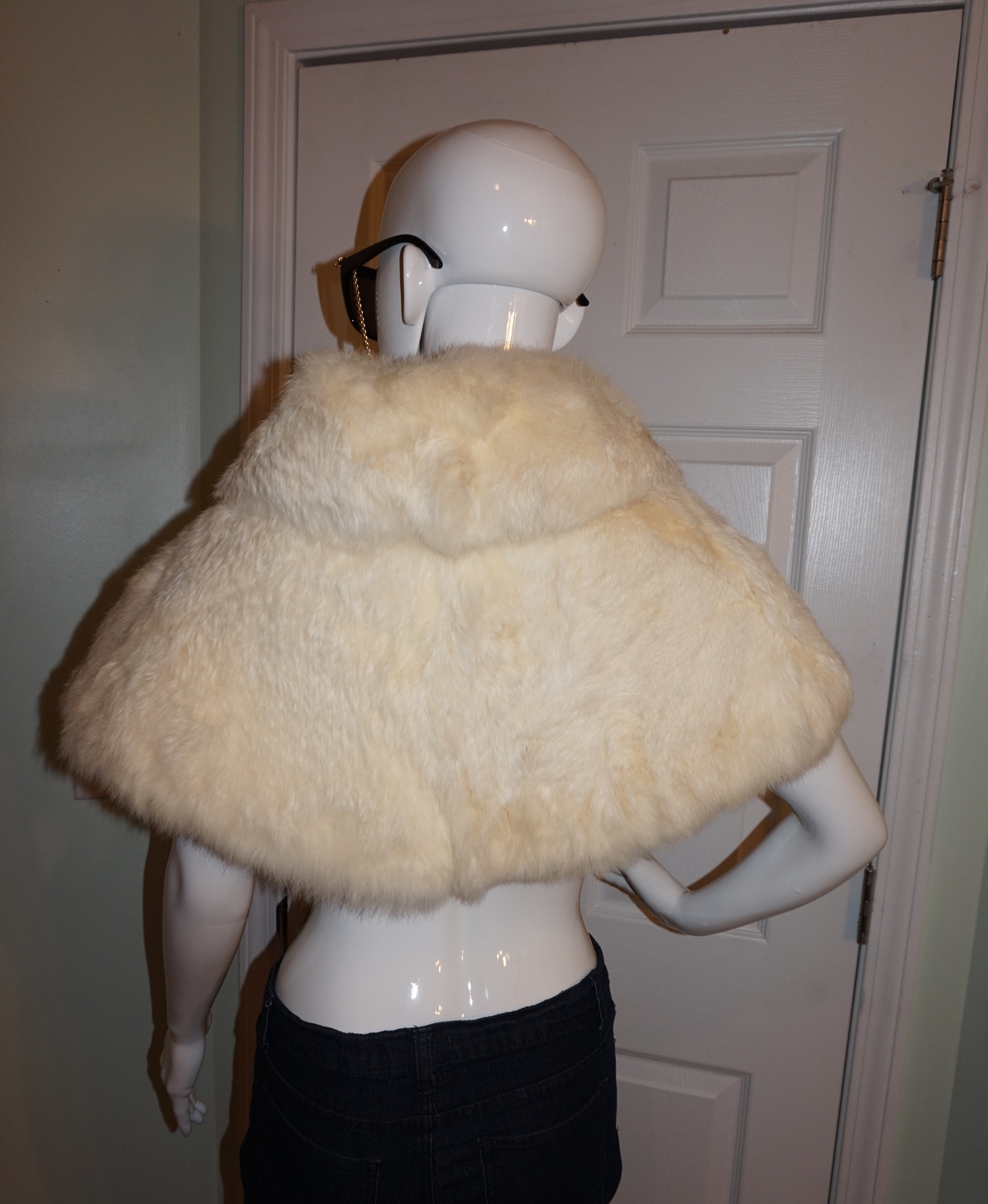 Up for sale is a lovey Vintage KronField Furs White Rabbit Fur Collar. The overall length is 16" long and from one side to the other is 26". Nice and soft!!!