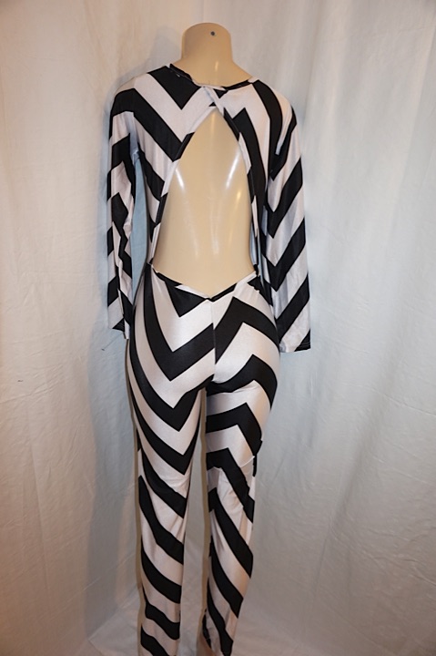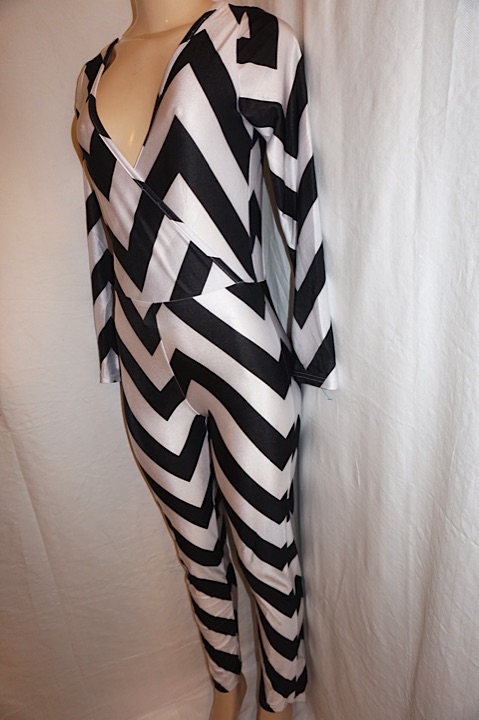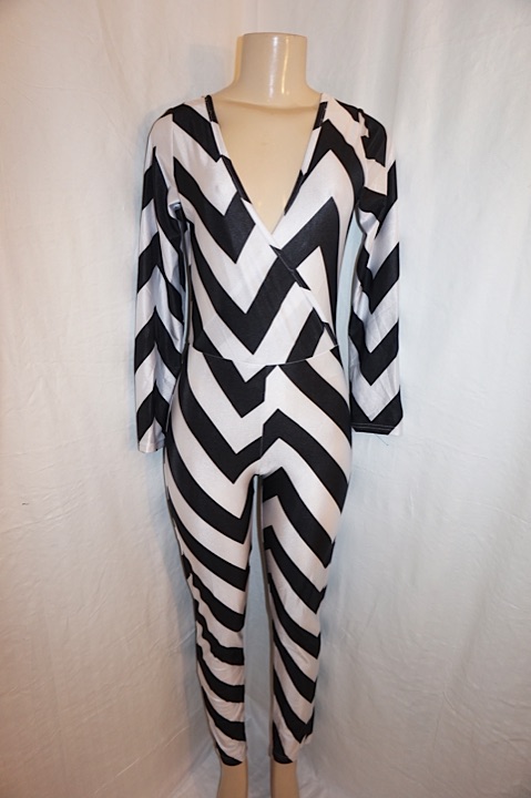 Up for sale is this Vintage Eunice Lai Black/White Jumpsuit, size S-M. The material is spandex and it does not have shoulder pads. The measurements are 16" pit to pit, sleeve 19", with overall length 56".