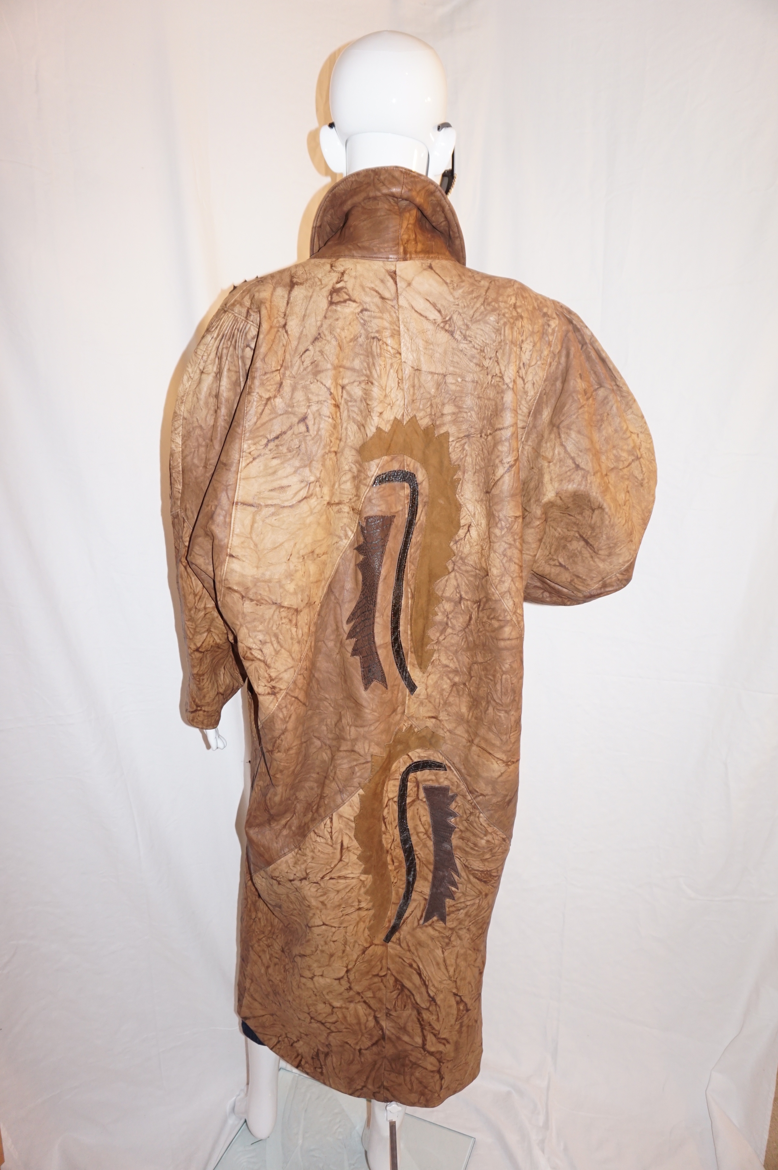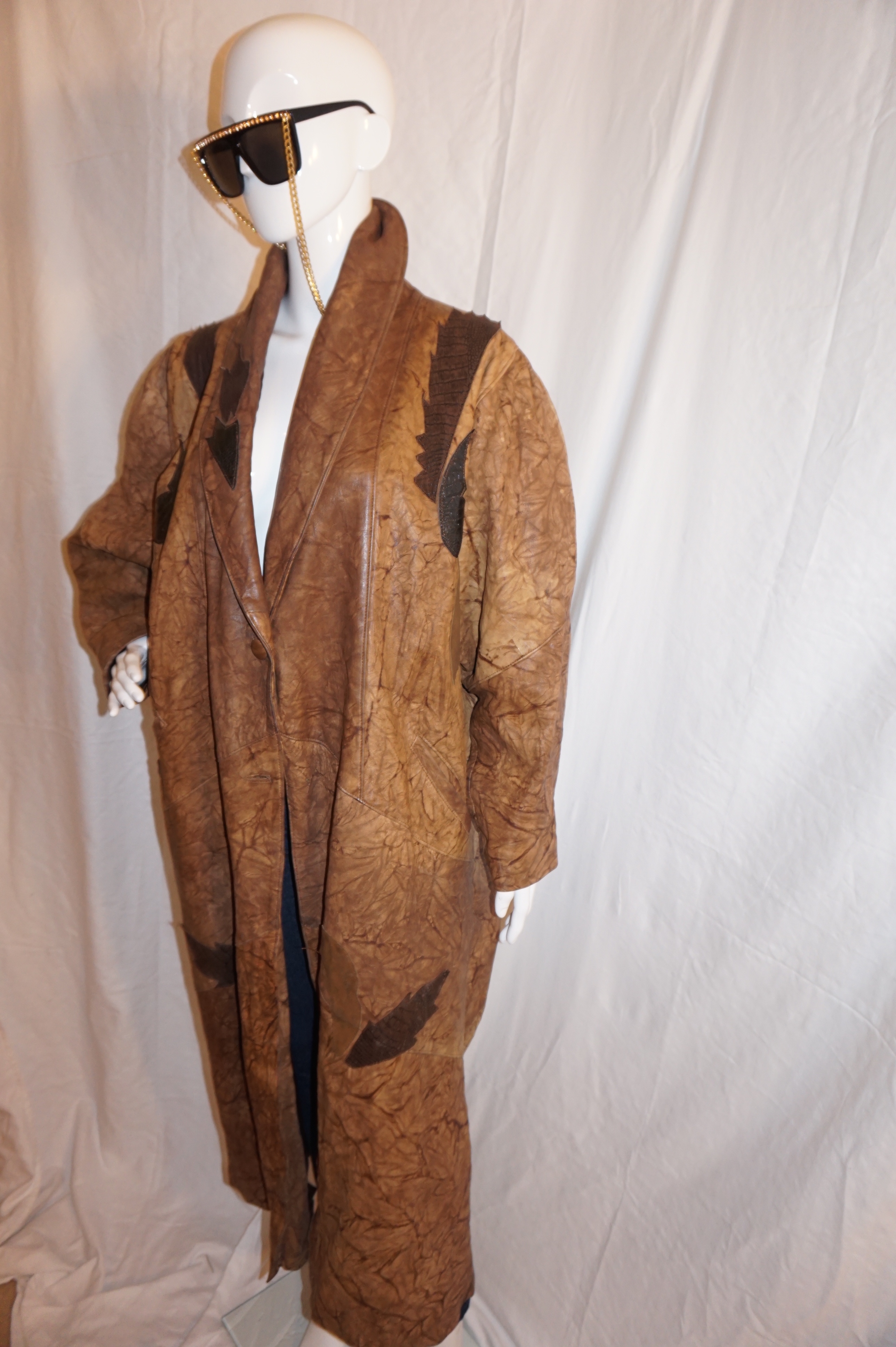 Up for sale is this Vintage Brown Leather Trench Coat Size 3x. The material is leather with measurements of 28" pit to pit, sleeve 19", with overall length 50". This leather jacket includes shoulder pads.