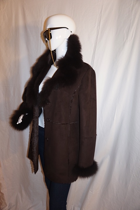 Vintage Regent Park Brown Suede Coat with Furc Collar, L