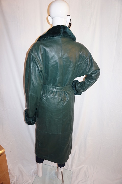 Vintage Laura Winston Green Leather Trenchcoat, L