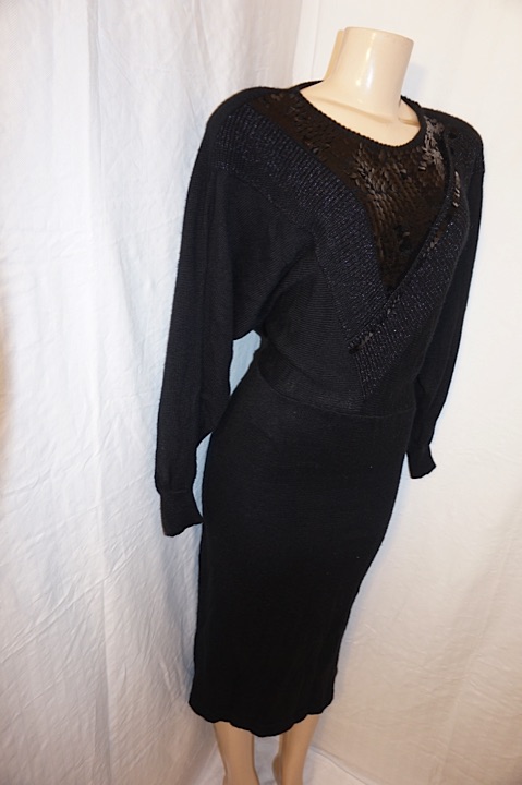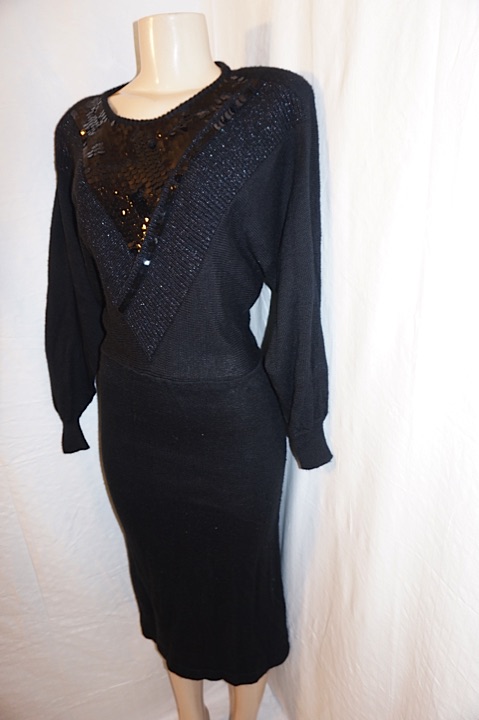 Up for sale is this Vintage Burman INT Black Sweater Dress, size 1X. The material is ramie with measurements 19" pit to pit, sleeve 18", with overall length 50". The dress does have shoulder pads.