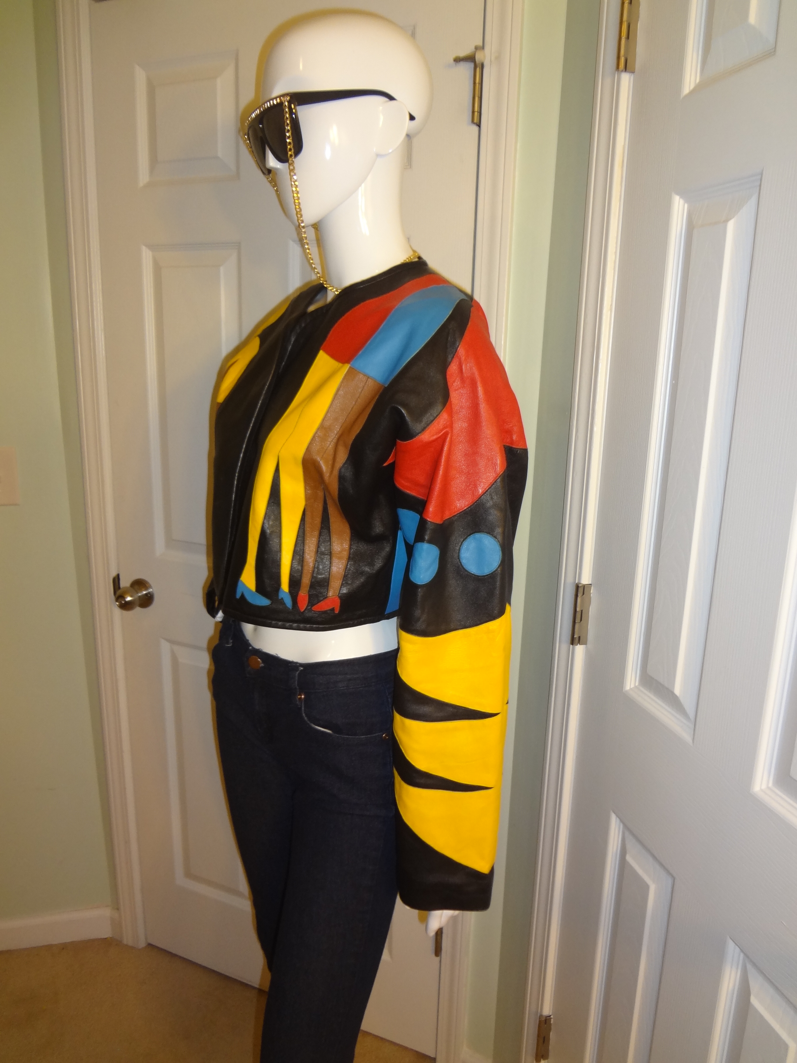 Up for sale is a RARE Vintage M G Ballard Black Leather Face Jacket Size XL-1x. The material is 100% leather and it do not have shoulder pads. The measurements are pit to pit 23", sleeve 18", overall length is 16" long. The arm circumference is 14" around.