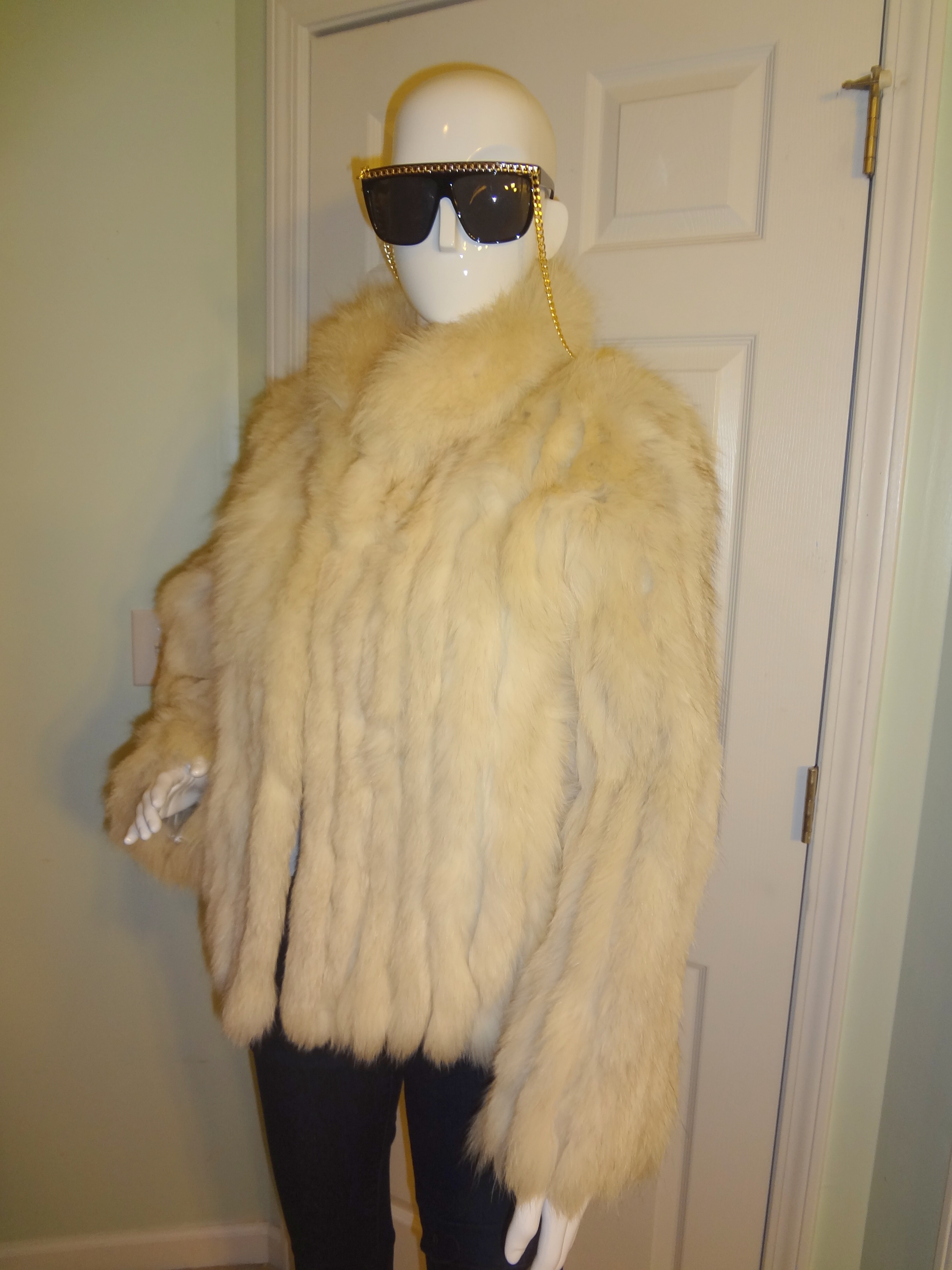 Up for sale is a lovely Vintage Saga Fox Fox Fur Coat Size L. This coat is so fabulous!! The material fox fur. The measurements are pit to pit 20", sleeve 16", and the overall length is 25" long.
