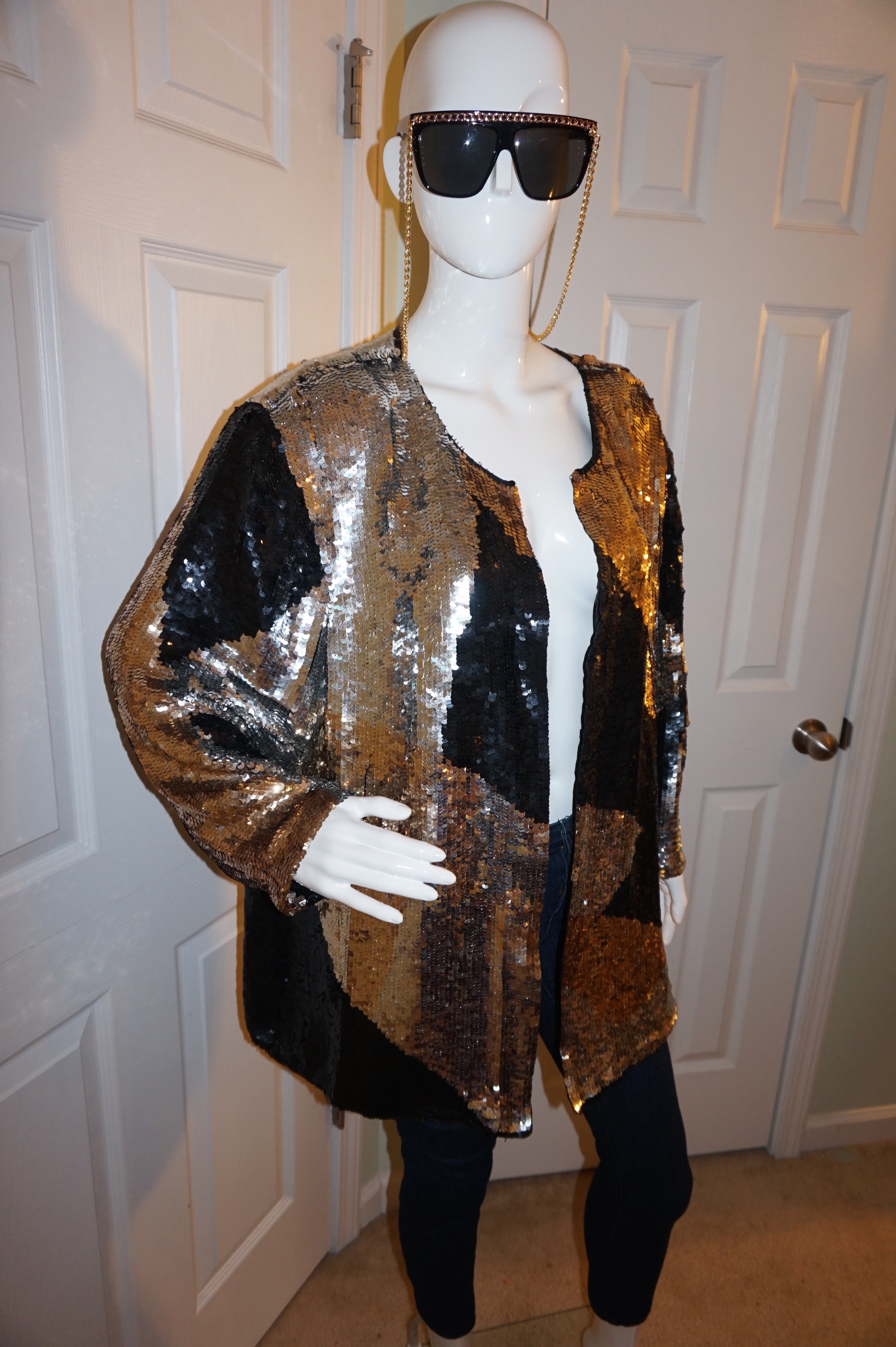 Vintage Royal Feelings Black/Gold Silver Sequins Throw Jacket Size 2x