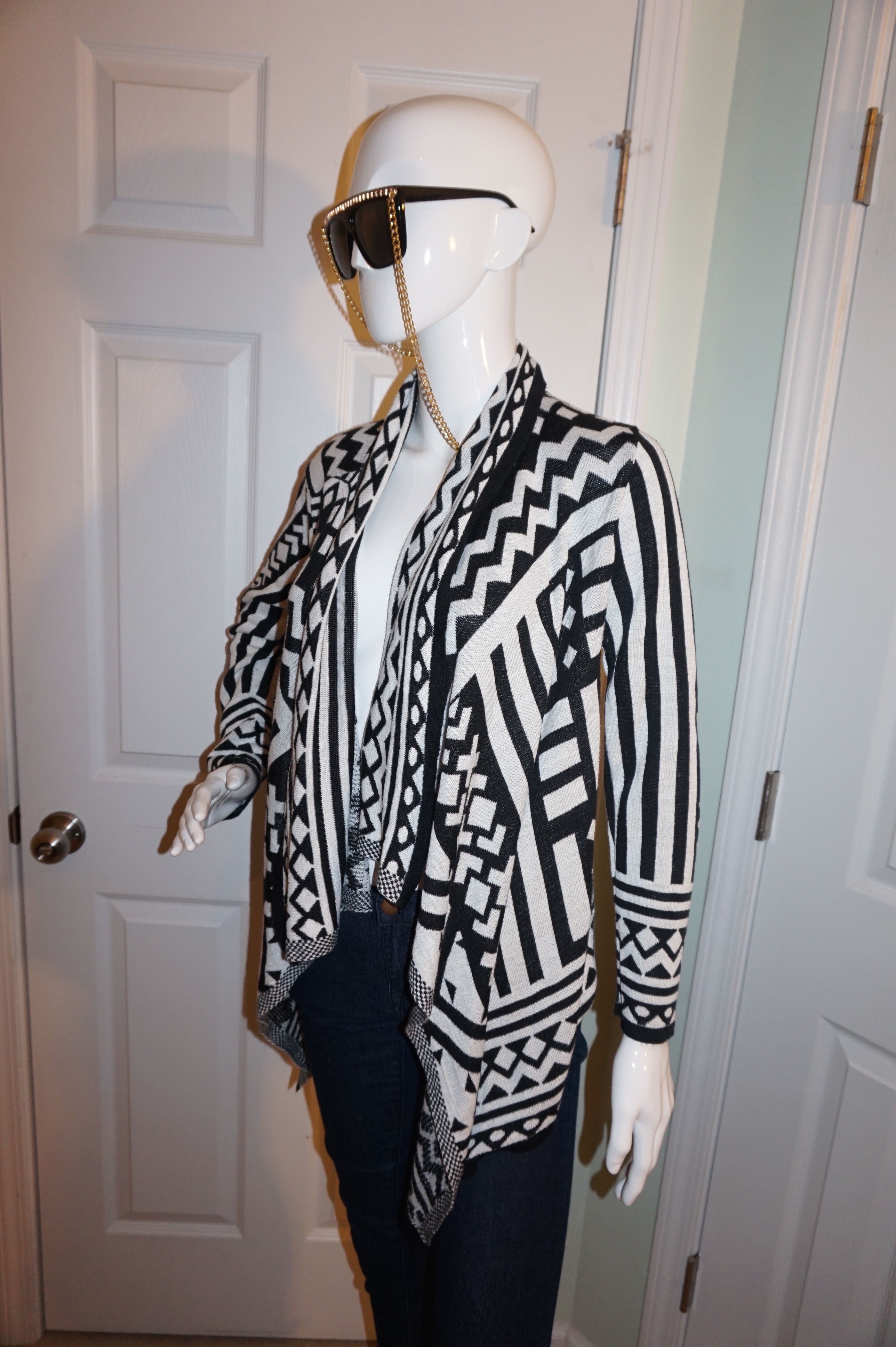Vintage Demanding Black/White Design Throw Jacket Size M-L