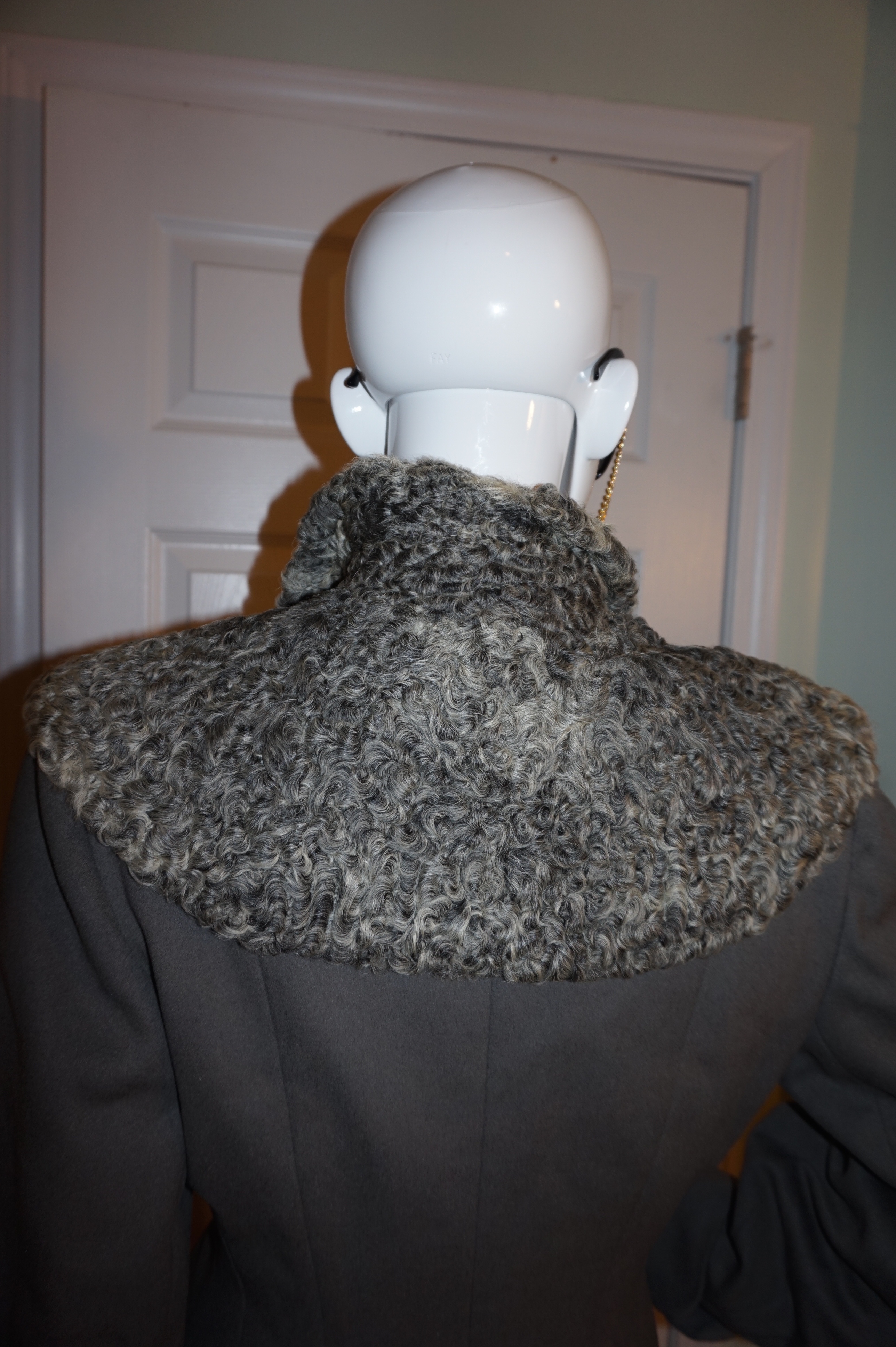 Vintage Gray Wool Coat with Curly Lamb Collar Size S-M