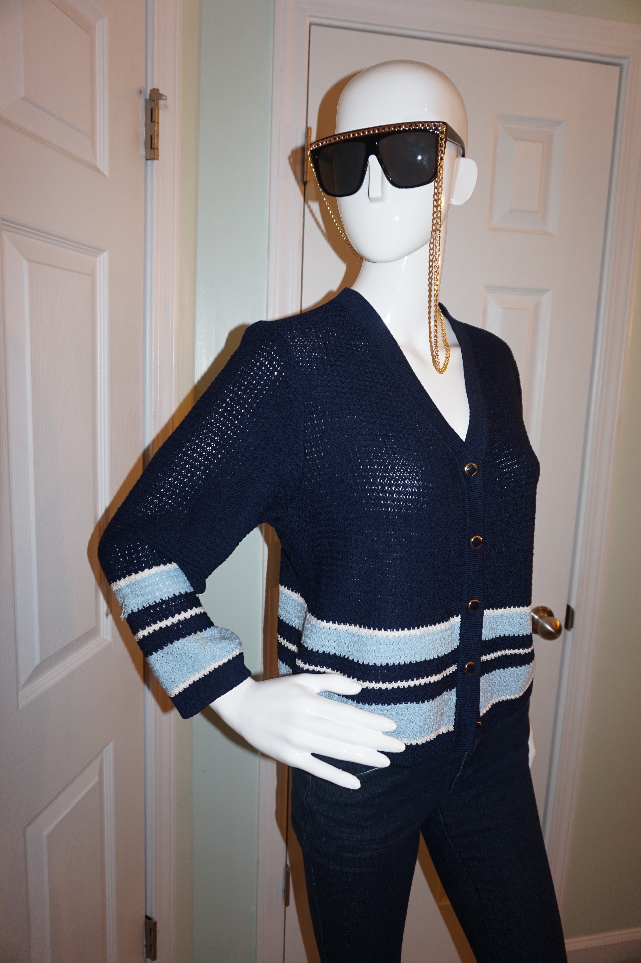 Vintage St. John Blue Cardigan Sweater Size M-L