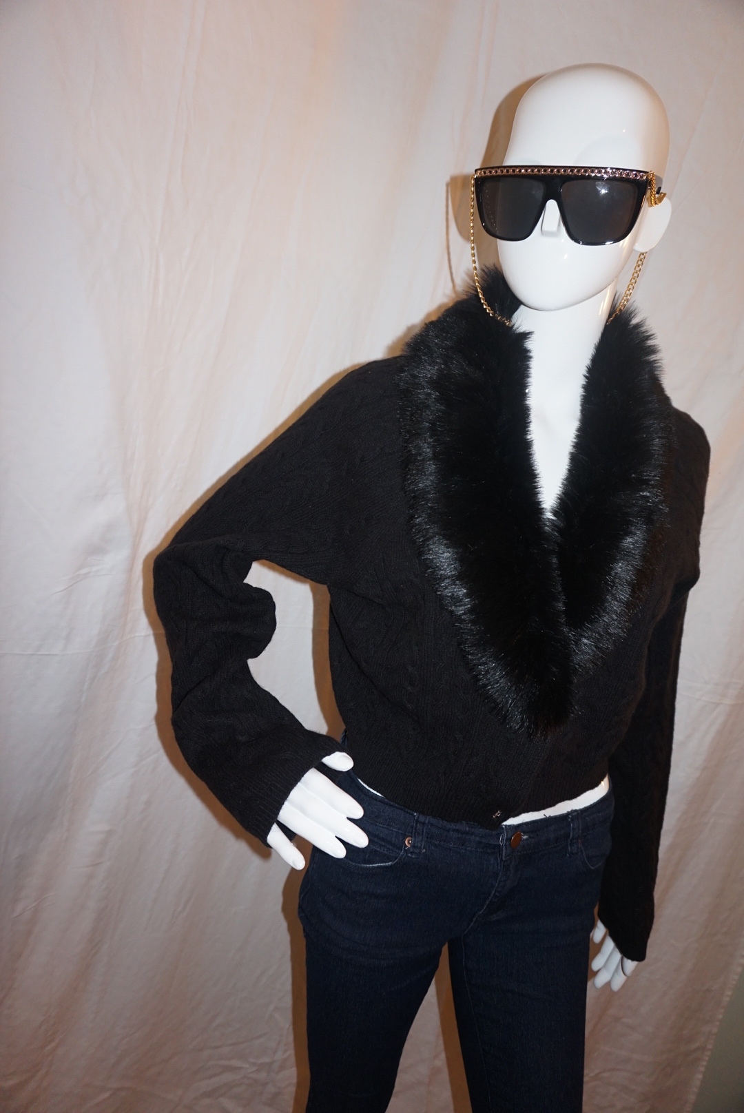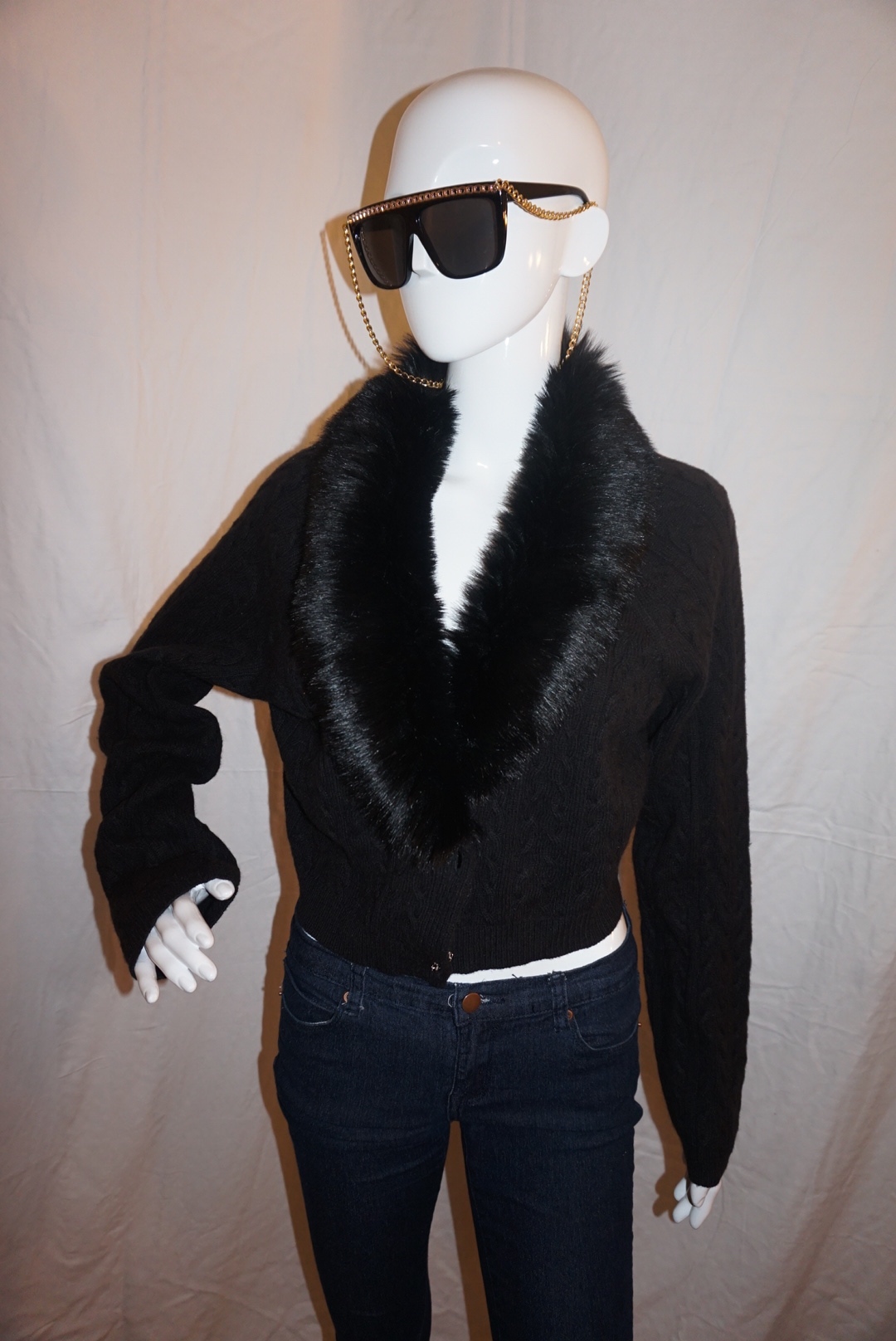 Up for sale is a lovely Vintage Loft Black Fur Neck Top Size XL. The material is wool and it does not have shoulder pads. The measurements are pit to pit 21", sleeve 20", and the overall length is 16" long. It is missing a button as well.