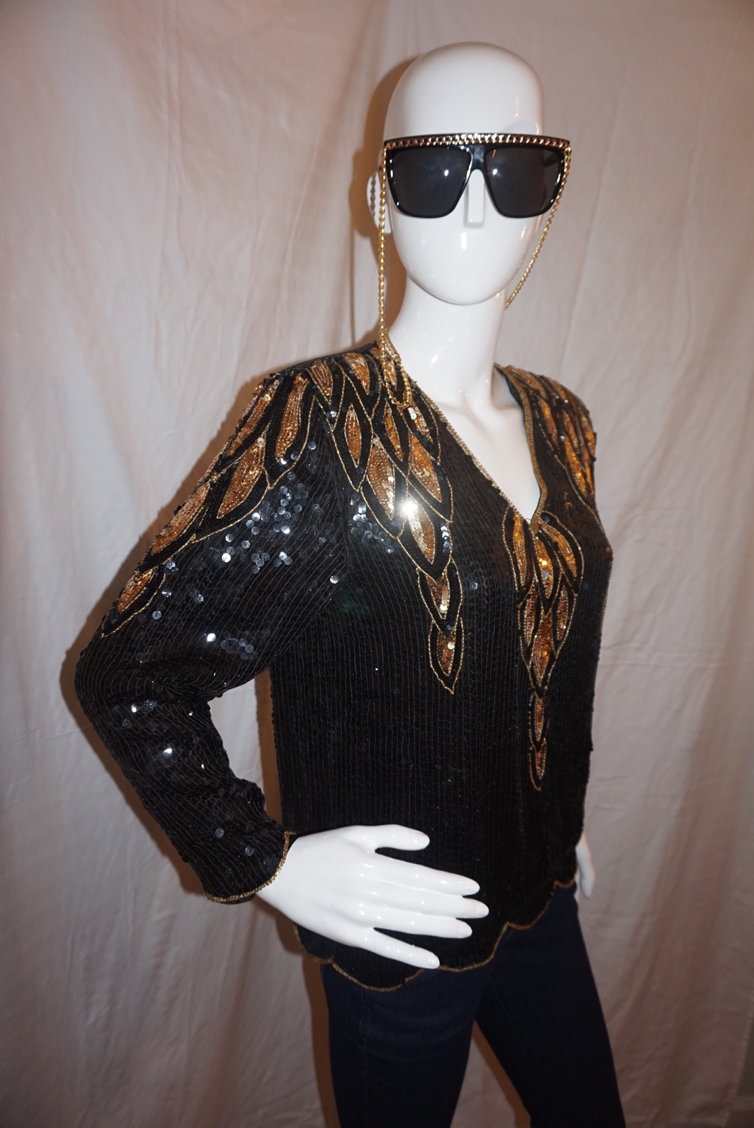 Vintage Petite Illustrations Black/Gold Sequins Top Size S