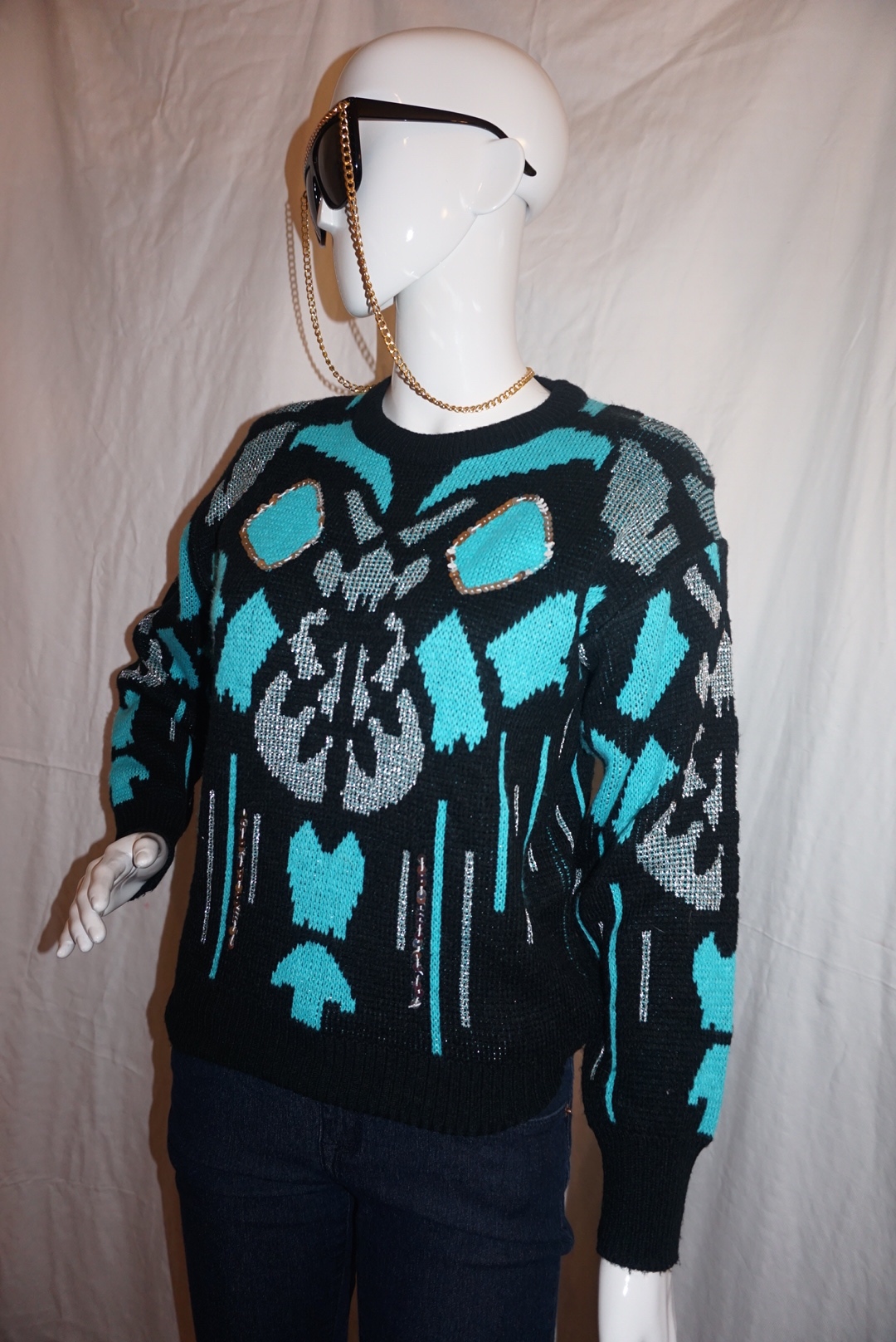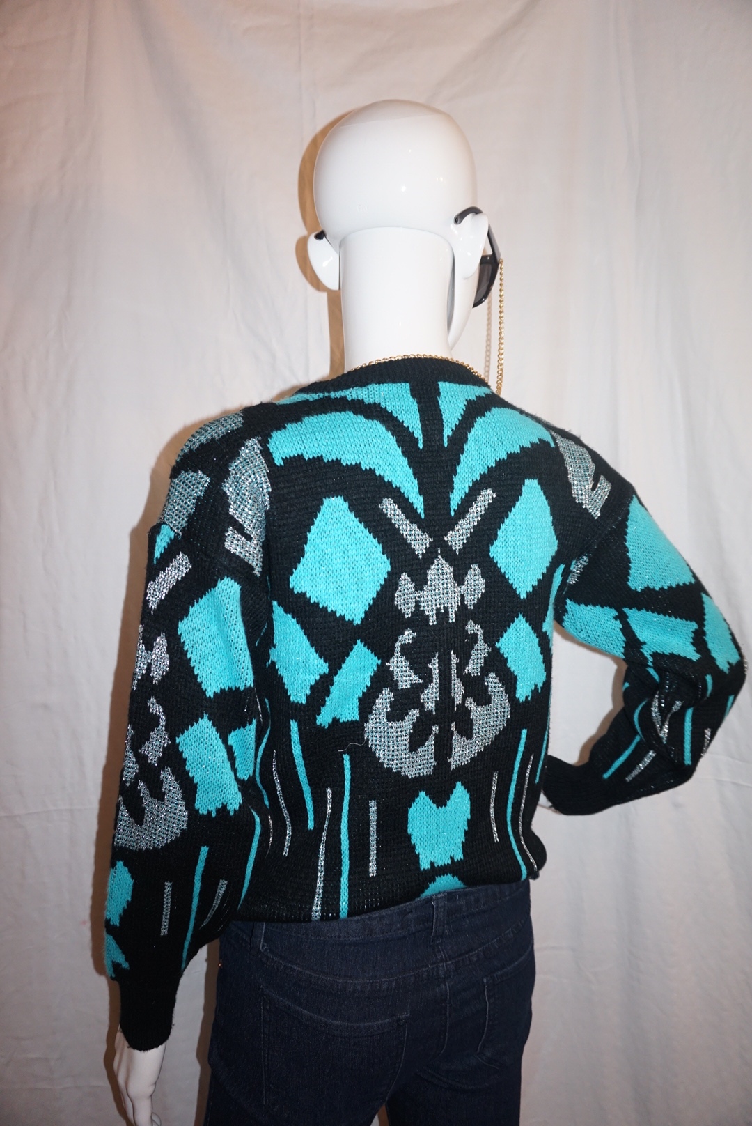 Vintage Apell Barre Black/Turquoise Sweater Size S