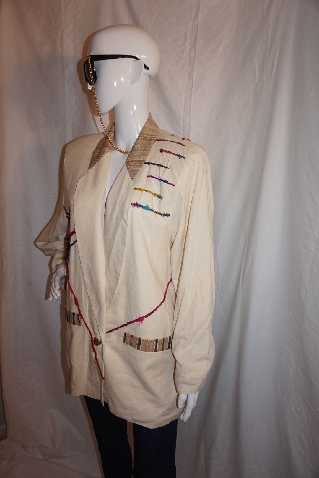 Up for sale is a lovely Vintage Mary Flangon Cream Blazer Size 1x.The material is silk and it does have shoulder pads. The measurements are pit to pit 24", sleeve 16", and the overall length is 31" long.