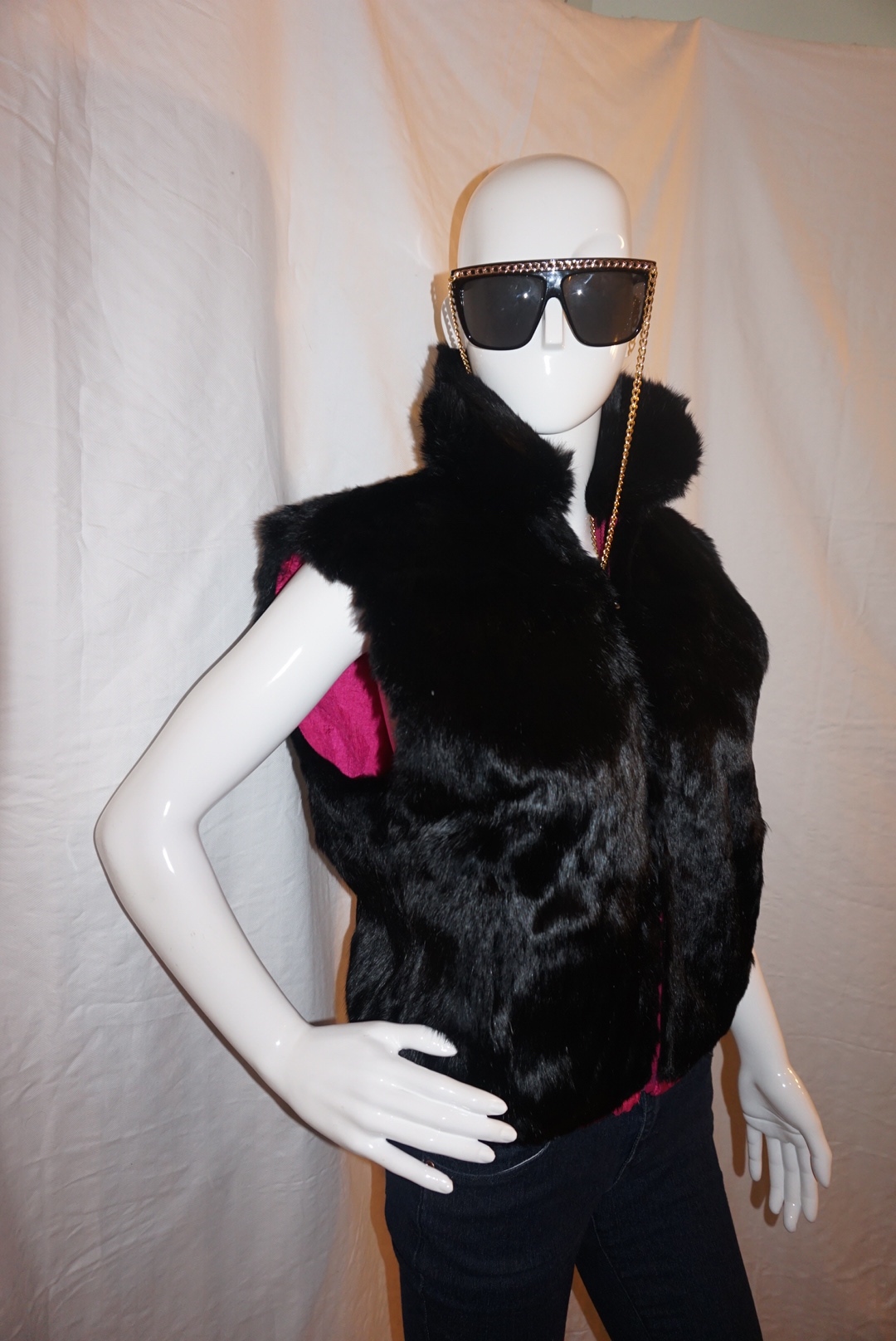 Up for sale is a lovely Vintage Black Rabbit Fur Reversible Vest Size M. The material is 100% rabbit fur and the other side is nylon. The measurements are pit to pit 21", and the overall length is 22" long.