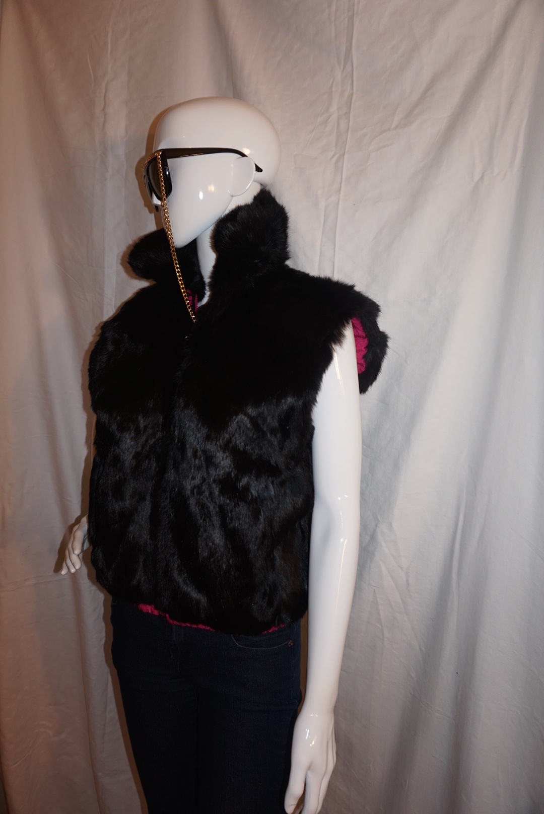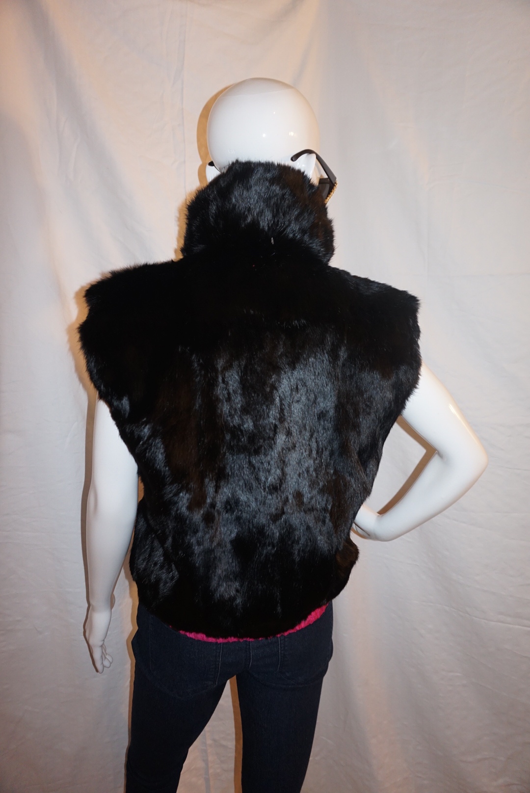 Vintage Black Rabbit Fur Reversible Vest Size M