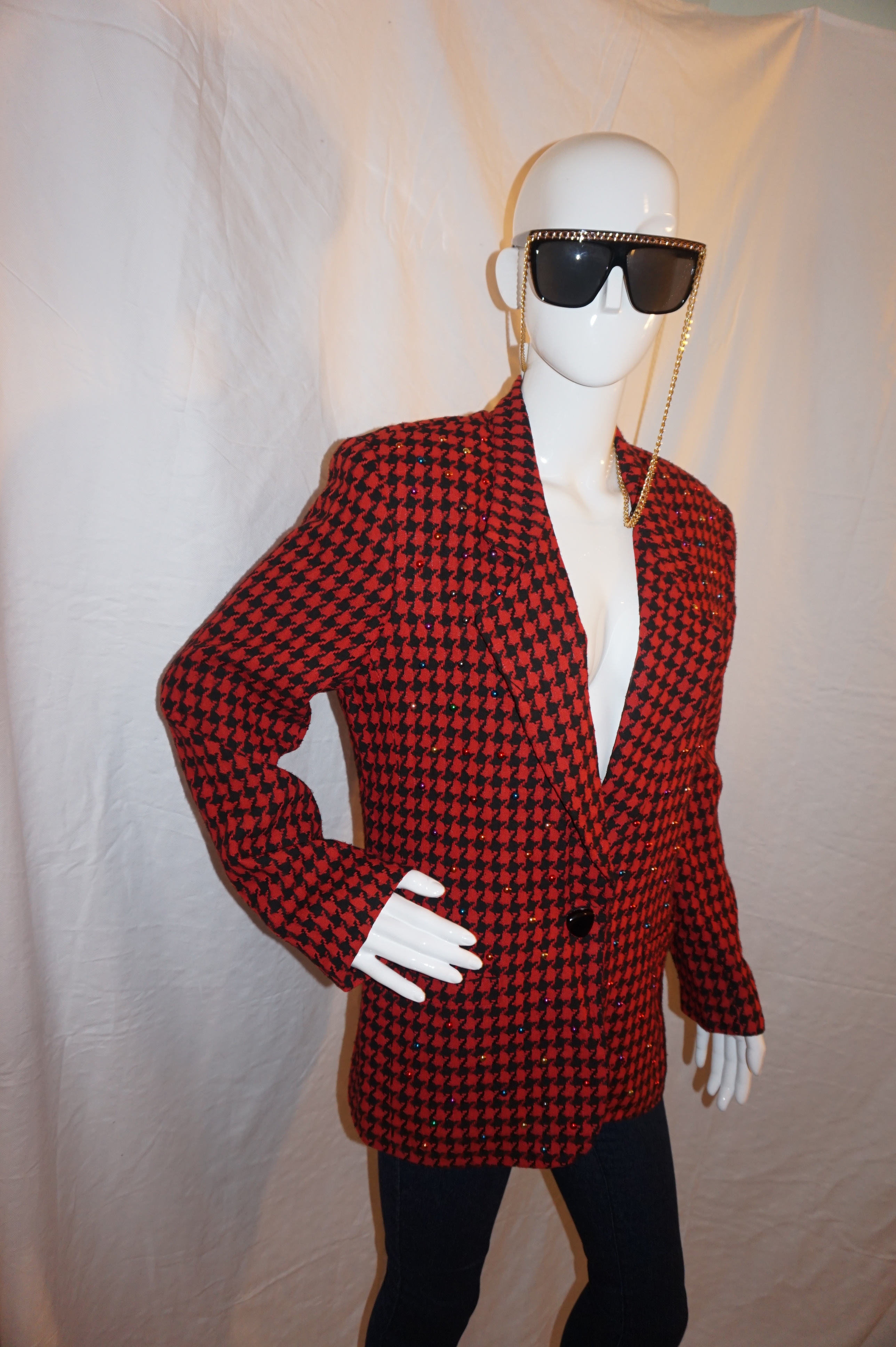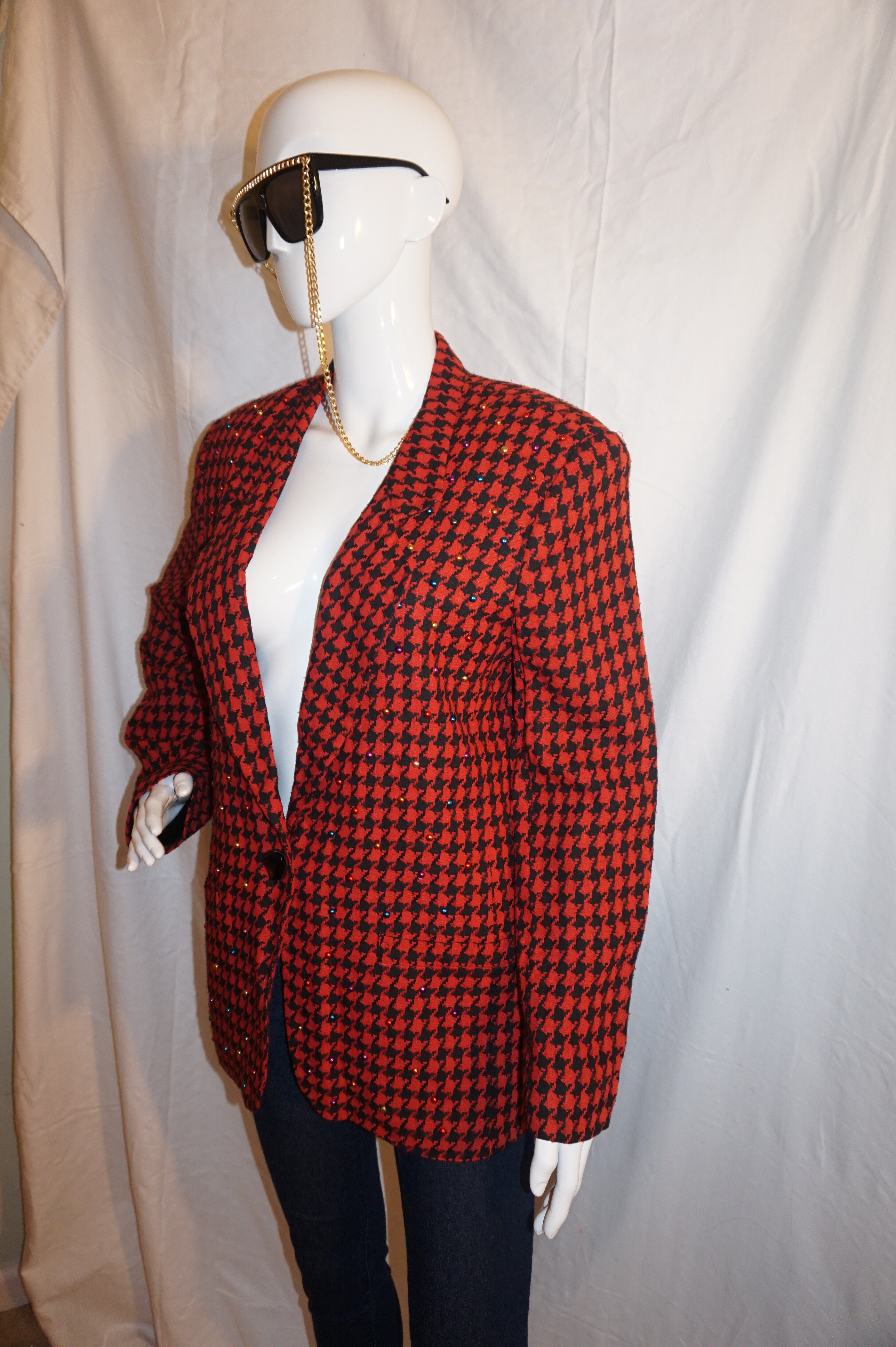 Vintage Cedars Red/Black Beaded Blazer Size M-L