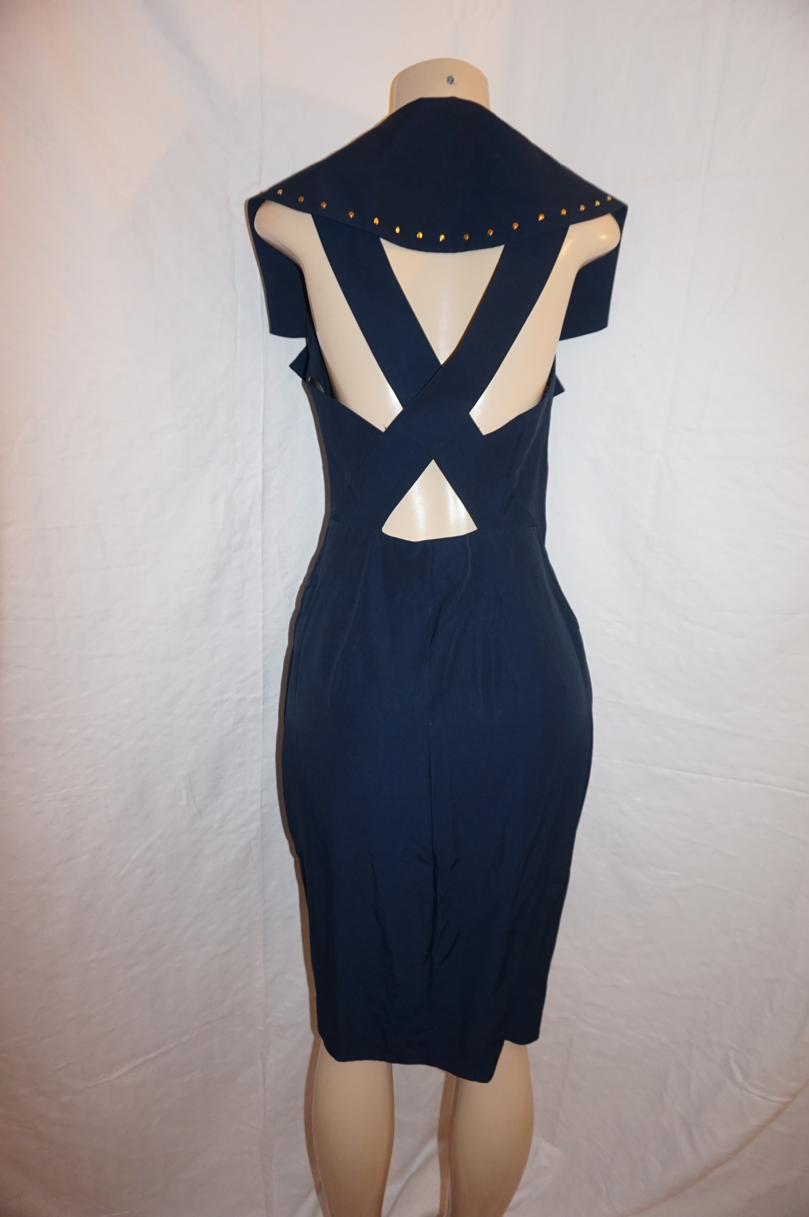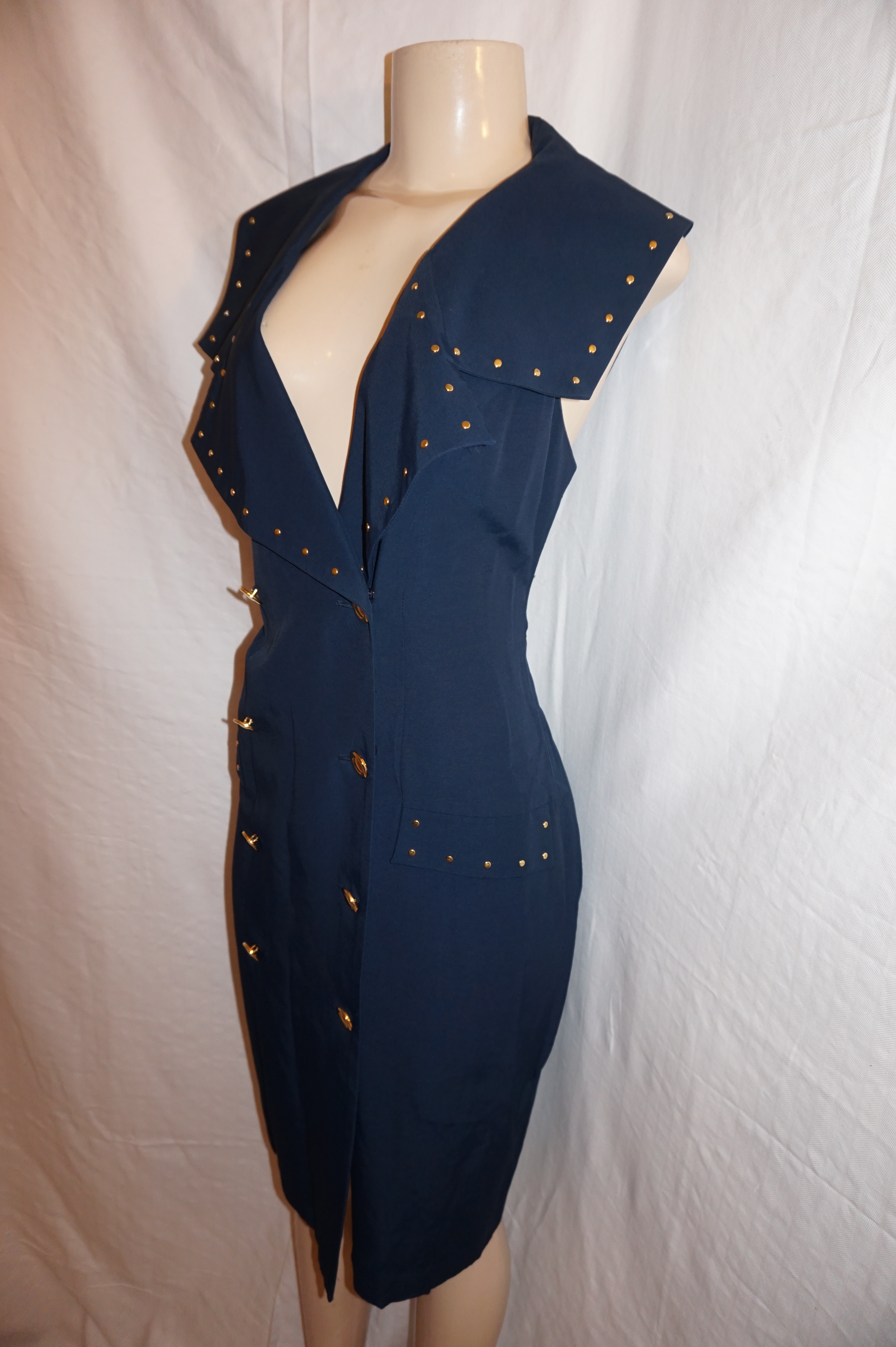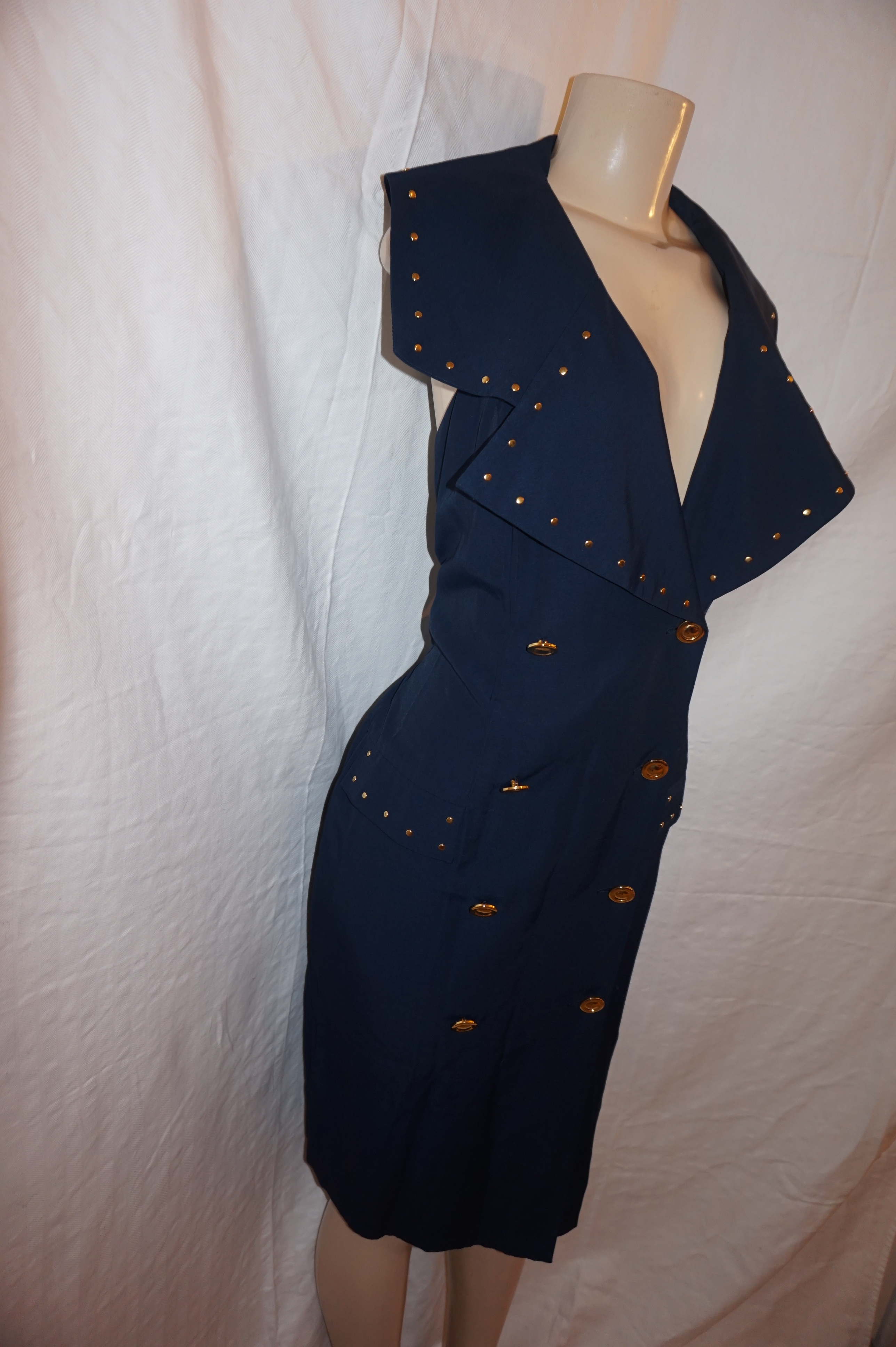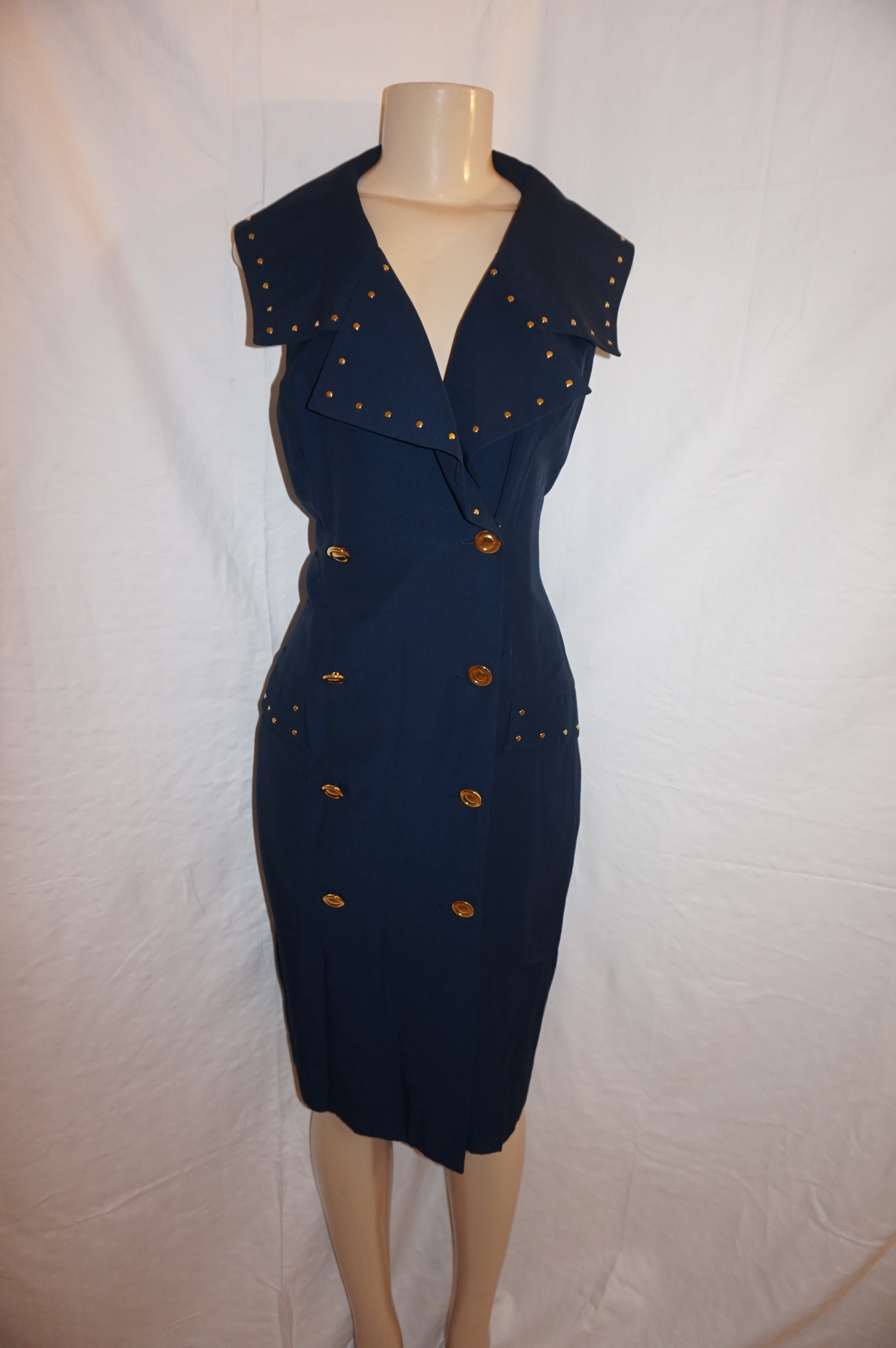 Vintage Joseph Ribkoff Navy blue/Gold button dress Size M-L