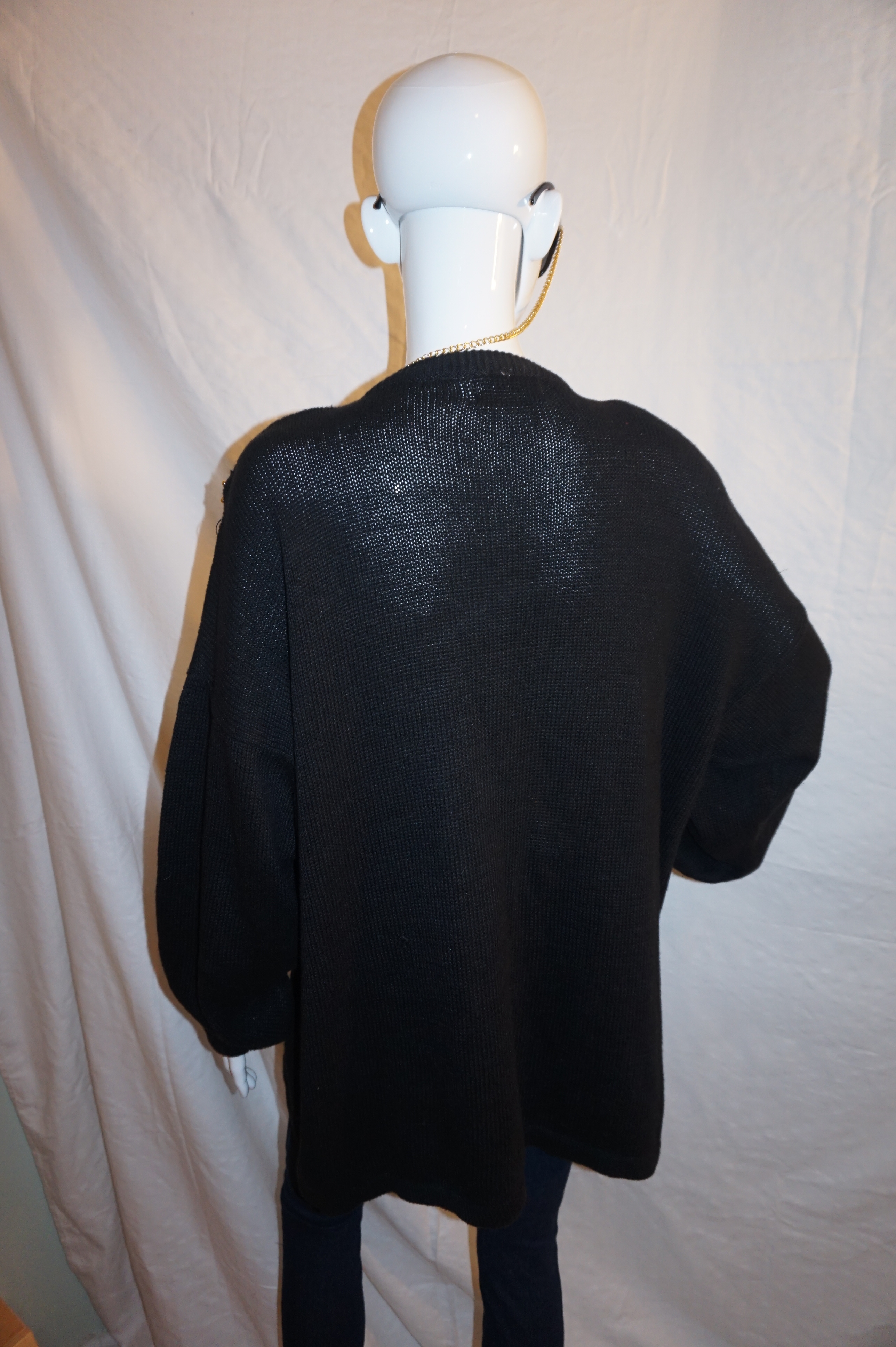 Up for sale is is a lovely Vintage Western Collection Black/Gold Sequins Sweater Size 3x. The material is ramie and it does have shoulder pads. The measurements are pit to pit 28", sleeve 22", and the overall length is 30" long.