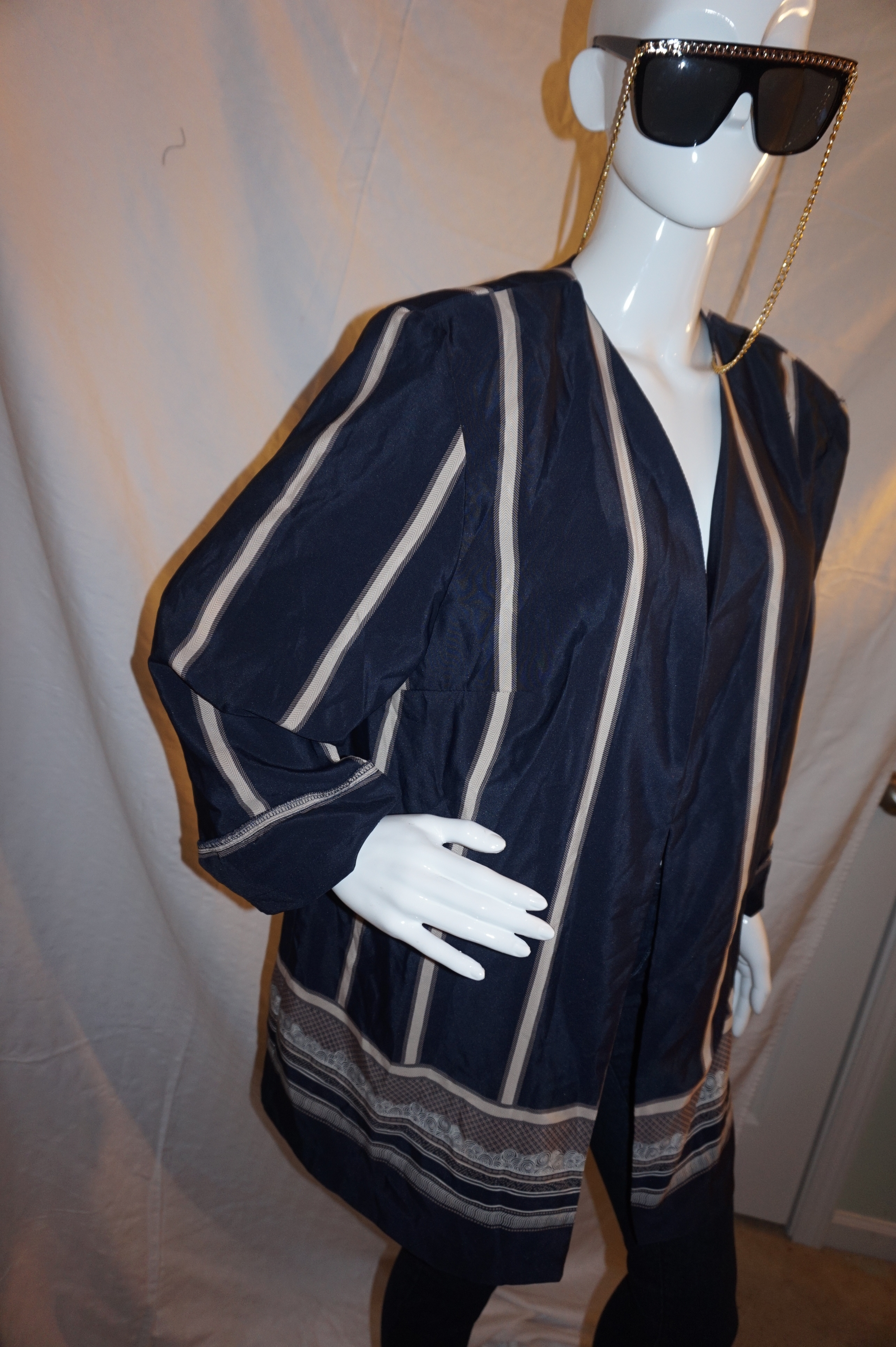 Up for sale is a lovely Vintage Jodi Scott Navy Blue Tan Throw Size 1x. The material is cotton and it does have shoulder pads. The measurements are pit to pit 21", sleeve 15", and the overall length is 27" long.