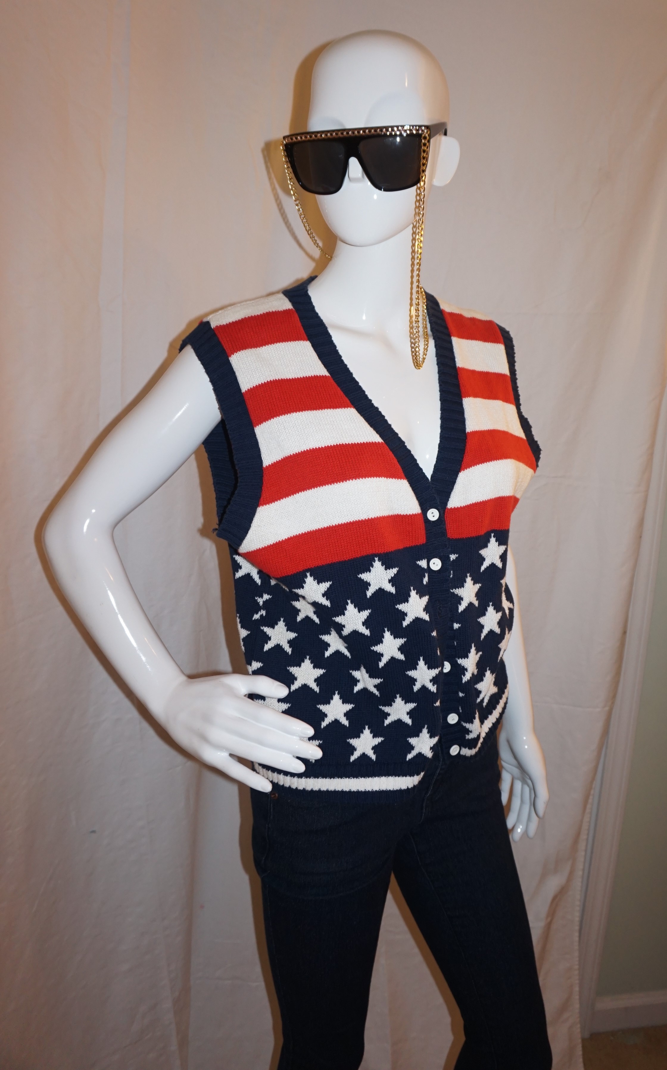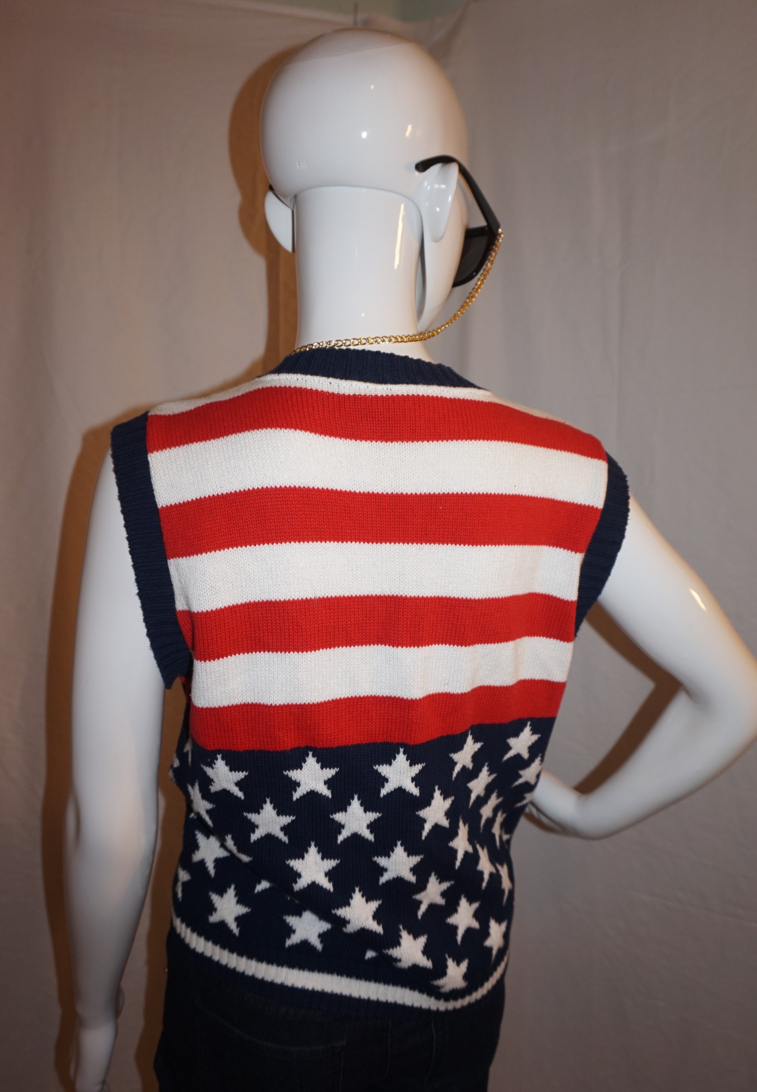 Up for sale is this Vintage Flag Vest. The material is cotton with measurements of 19" pit to pit, with overall length 21".