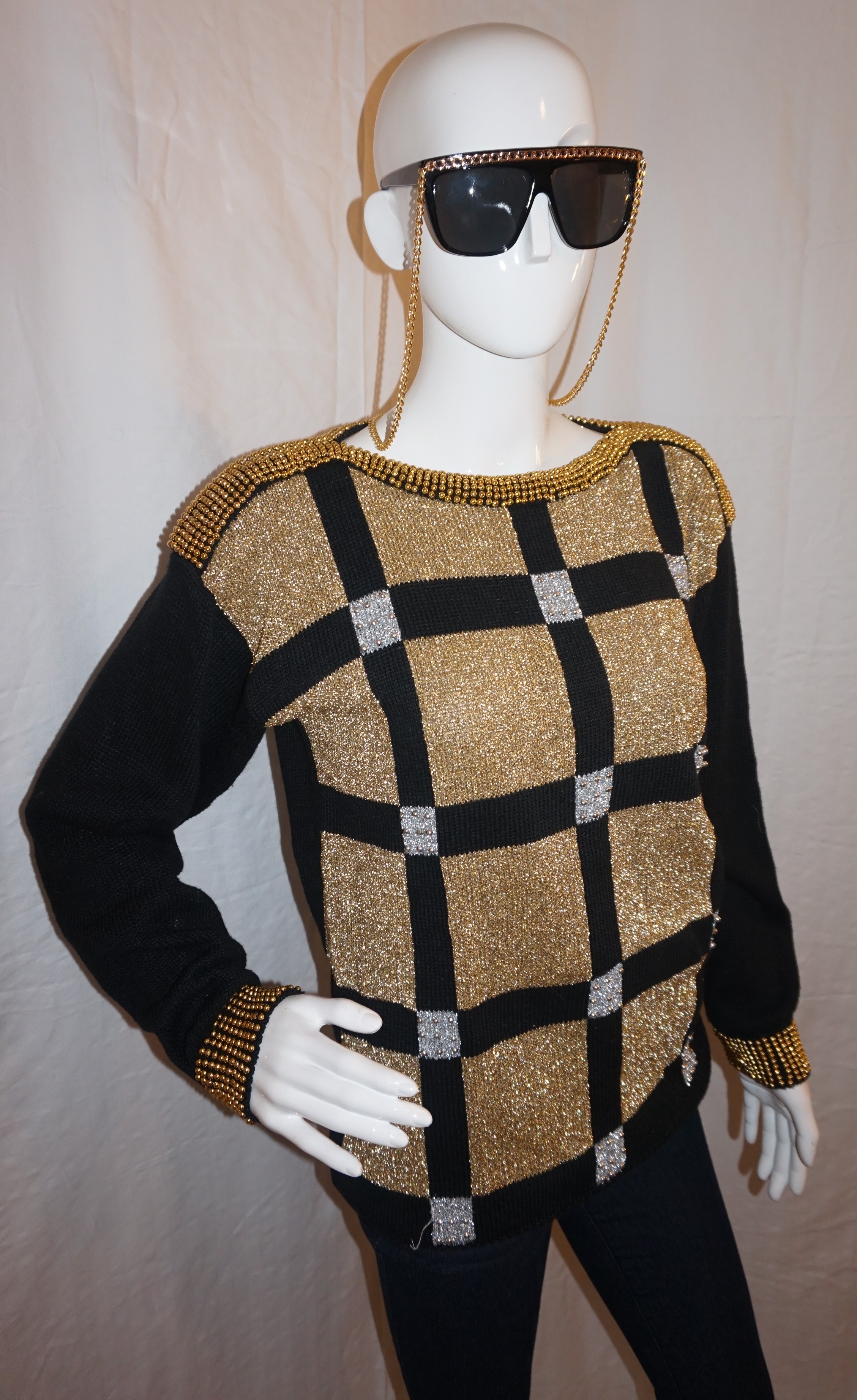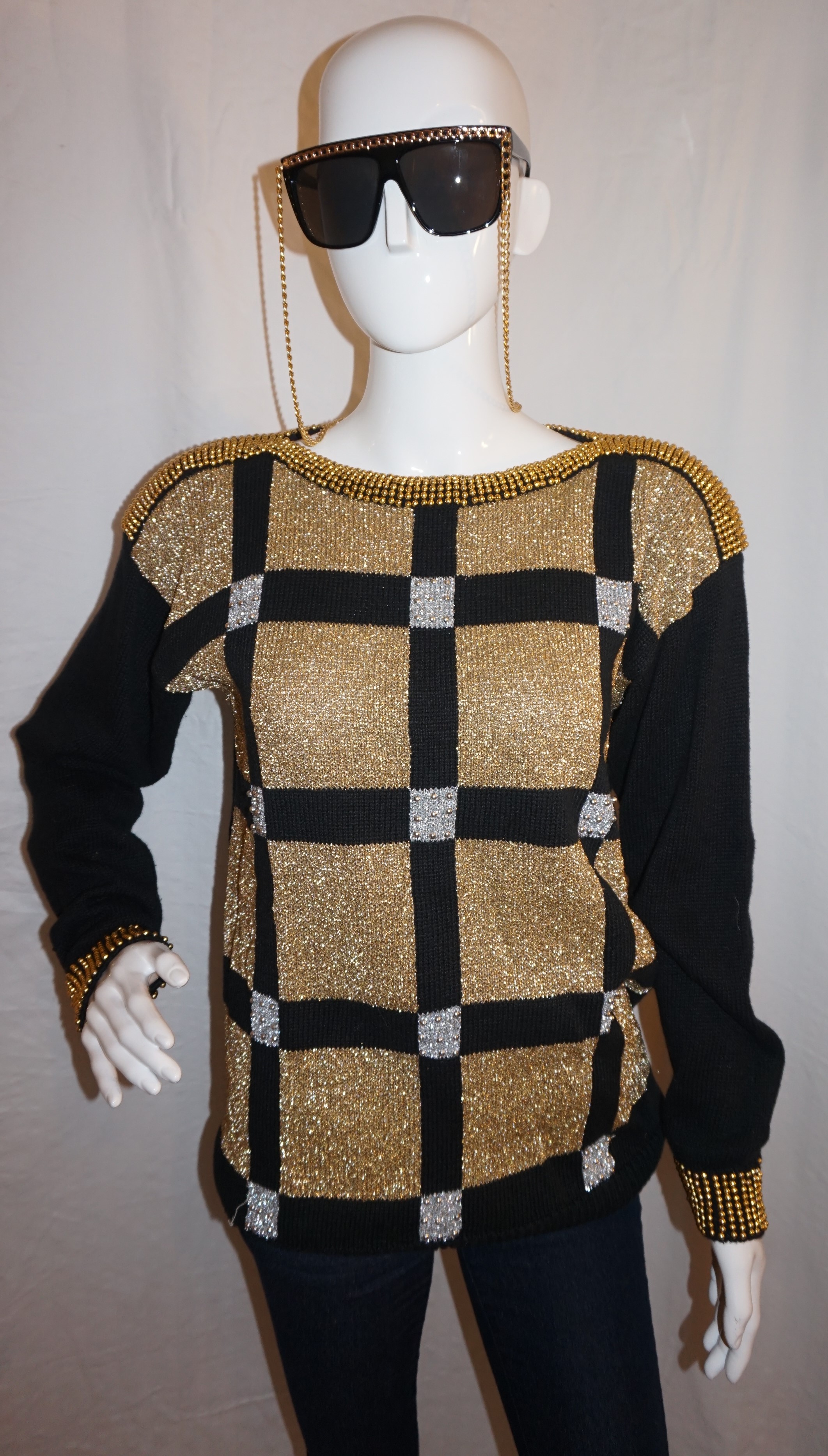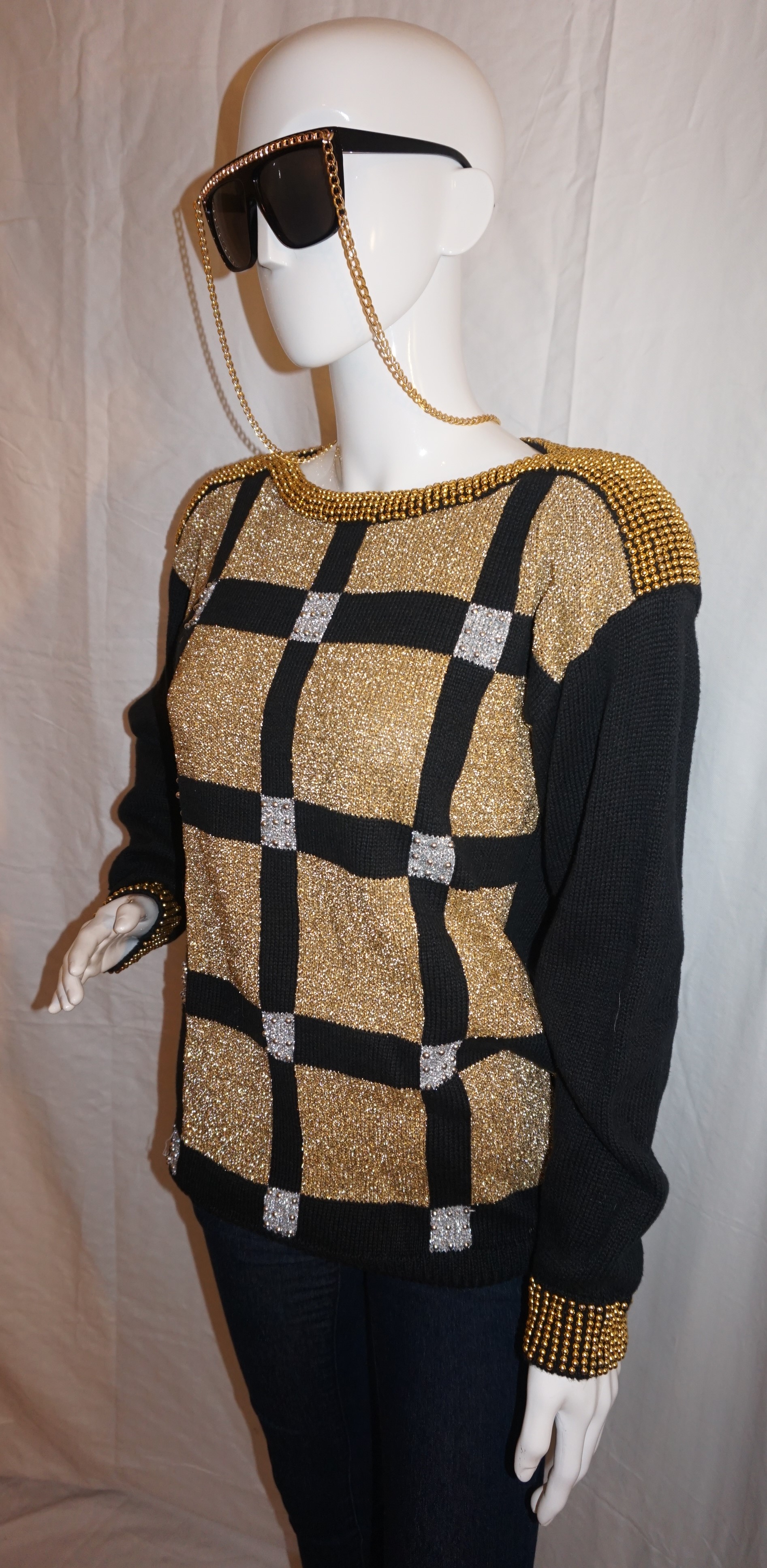 Up for sale is this Vintage square sweater Size L. The material is acrylic and it does have shoulder pads. The measurements of 20" pit to pit, sleeve 21", with overall length 26".