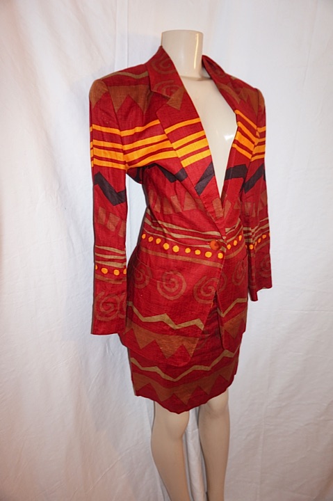 Up for sale is this Vintage 2-Piece Ellen Tracey Reo Jacket/Skirt Set, size medium. The material is linen with measurements of 18" pit to pit, sleeve 15", with overall length 31". Jacket does have shoulder pads. The measurements for the skirt are 14" waist with overall length 19".