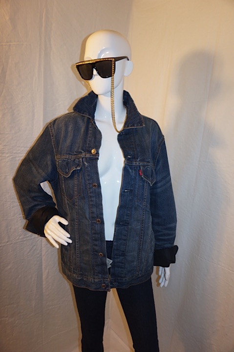 Up for sale is this Vintage Levi Dark Jean Jacket, size large. The material is cotton with measurements of 21" pit to pit, sleeve 19", with overall length 26". Jacket does not have shoulder pads.