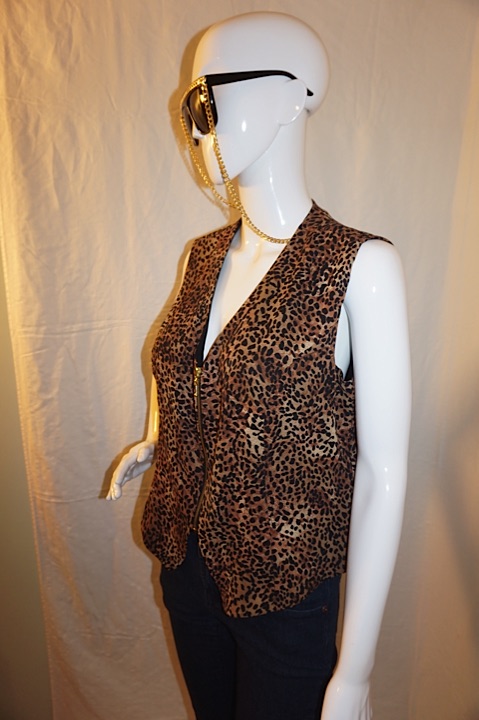 Vintage Nicole Leopard Zip-up Vest, Size XL