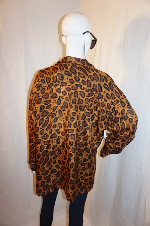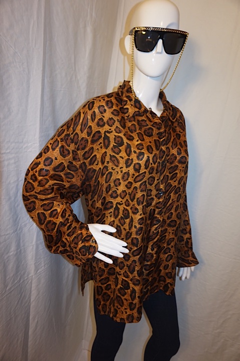 Up for sale is this Vintage Leopard Long Sleeve Top, size 1X. The material is silk with measurements 25" pit to pit, sleeve 18", with overall length 28". The top do have shoulder pads.