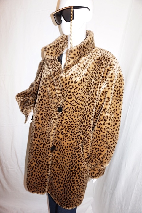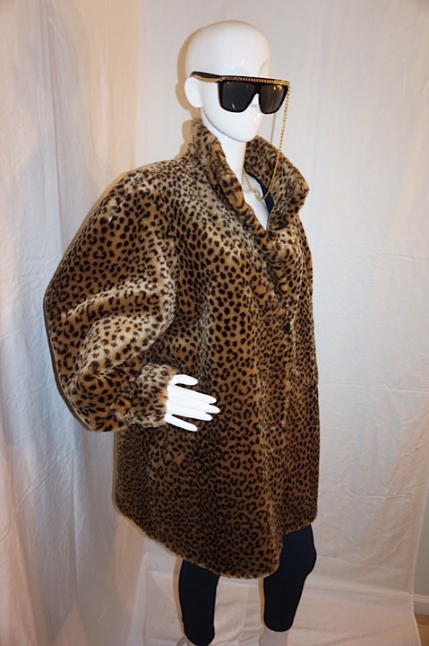 Up for sale is this Vintage Leopard Coat, size 1X. The material is polyester and it does have shoulder pads. The measurements are 25" pit to pit, sleeve 16", with overall length 36".