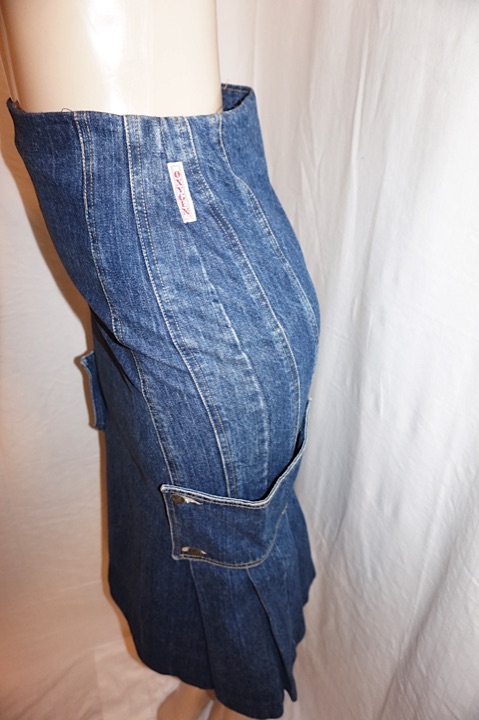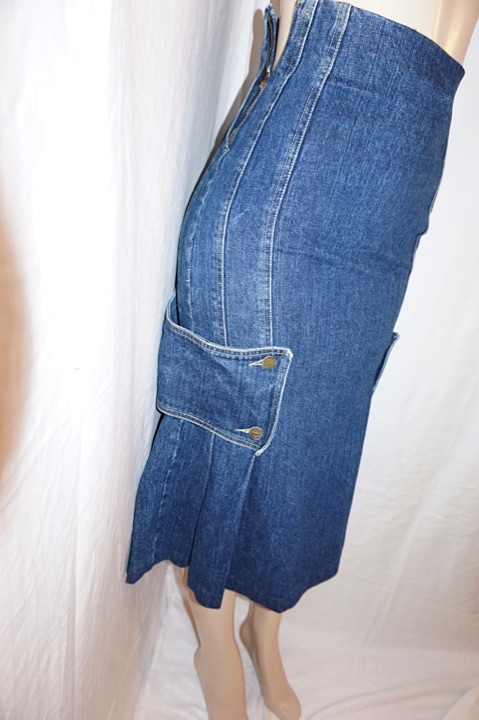 Up for sale is this Vintage Oxygen Jean High Waisted Skirt, size S. The material is cotton. The measurements are 12" waist, sleeve 18" with overall length 31".