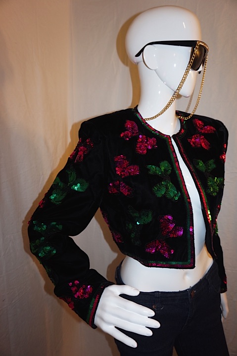 Vintage A.J. Bari Black/Green/Pink Jacket, Size S-M