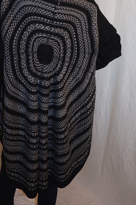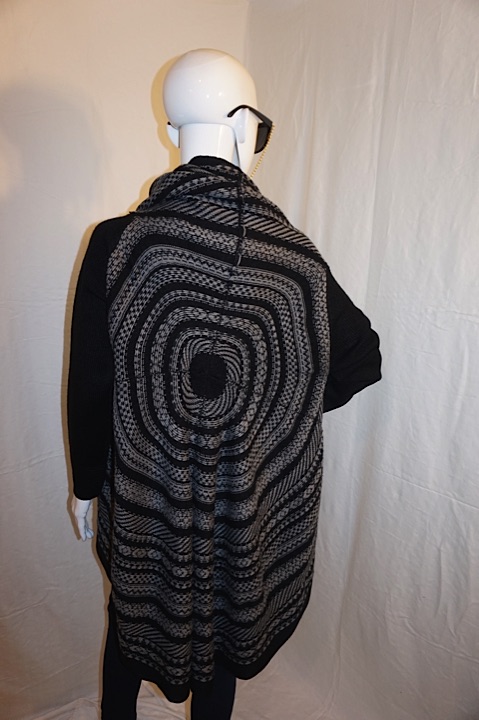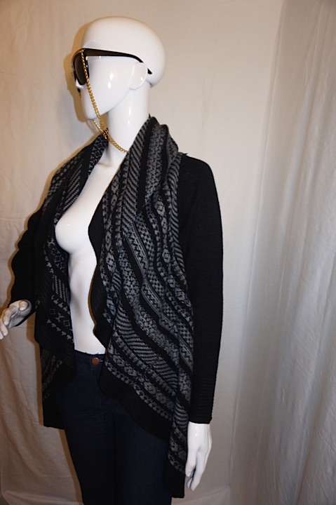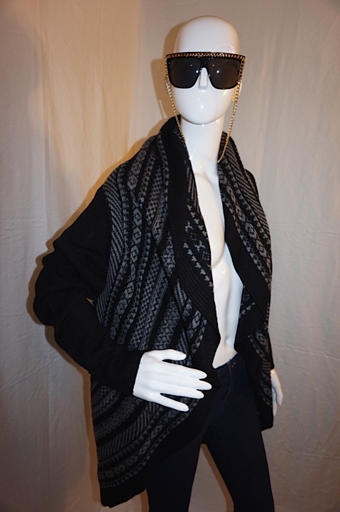 Up for sale is this Vintage Logo Black/Gray Throw, size L. The material is acrylic and it does not have shoulder pads. The measurements are 24" pit to pit, sleeve 20", with overall length 36".