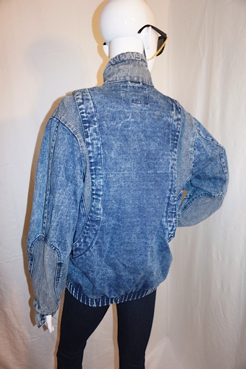 Up for sale is this Vintage Ruth Douglas Jean Jacket, size M. The material is cotton and it does not have shoulder pads. The measurements are 22" pit to pit, sleeve 19", with overall length 25".