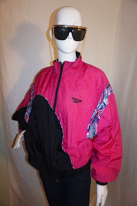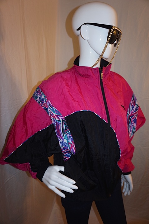 Up for sale is this Vintage Reebox Pink/Black Jacket, size 1X. The material is nylon and it does not have shoulder pads. The measurements are 24" pit to pit, sleeve 20", with overall length 24".