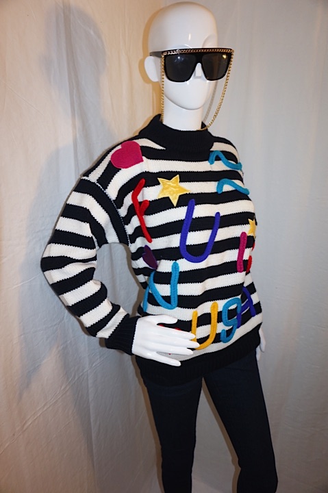 Up for sale is this Vintage Gitano USA Black/White Sweater, size S. The material is acrylic and it does not have shoulder pads. The measurements are 20" pit to pit, sleeve 20", with overall length 24".