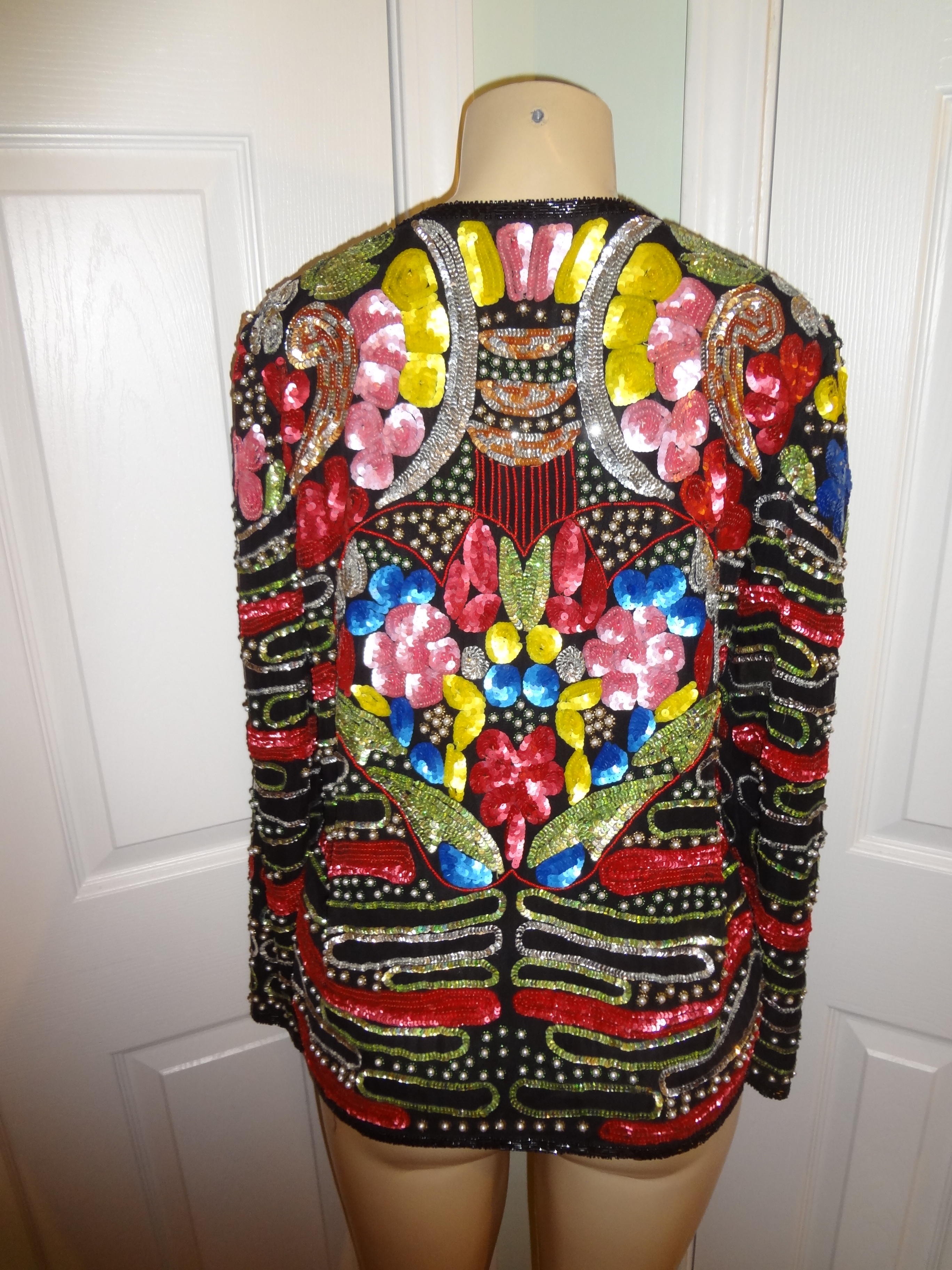 Vintage Joan Leslie Flower Sequins Jacket Size L