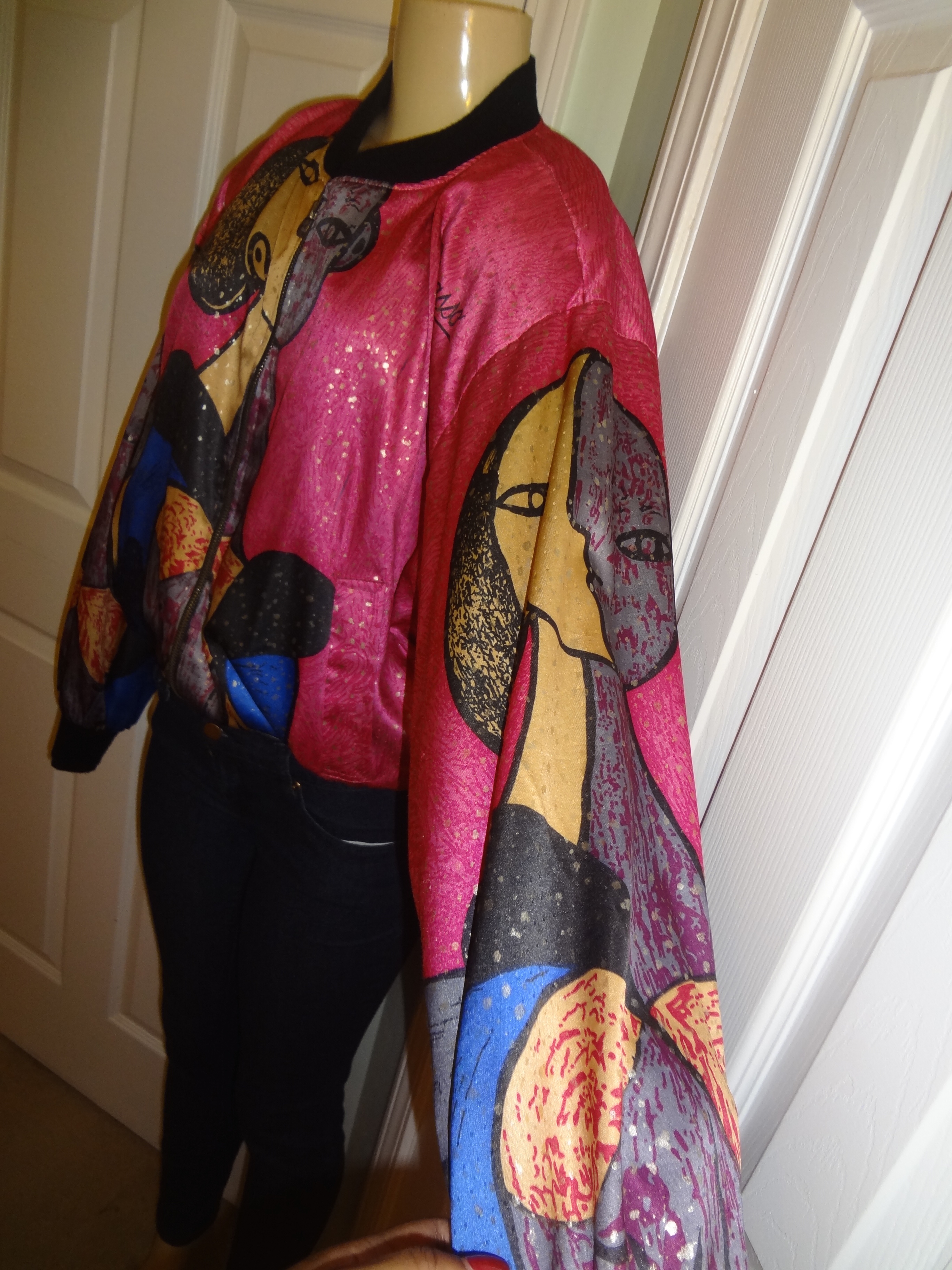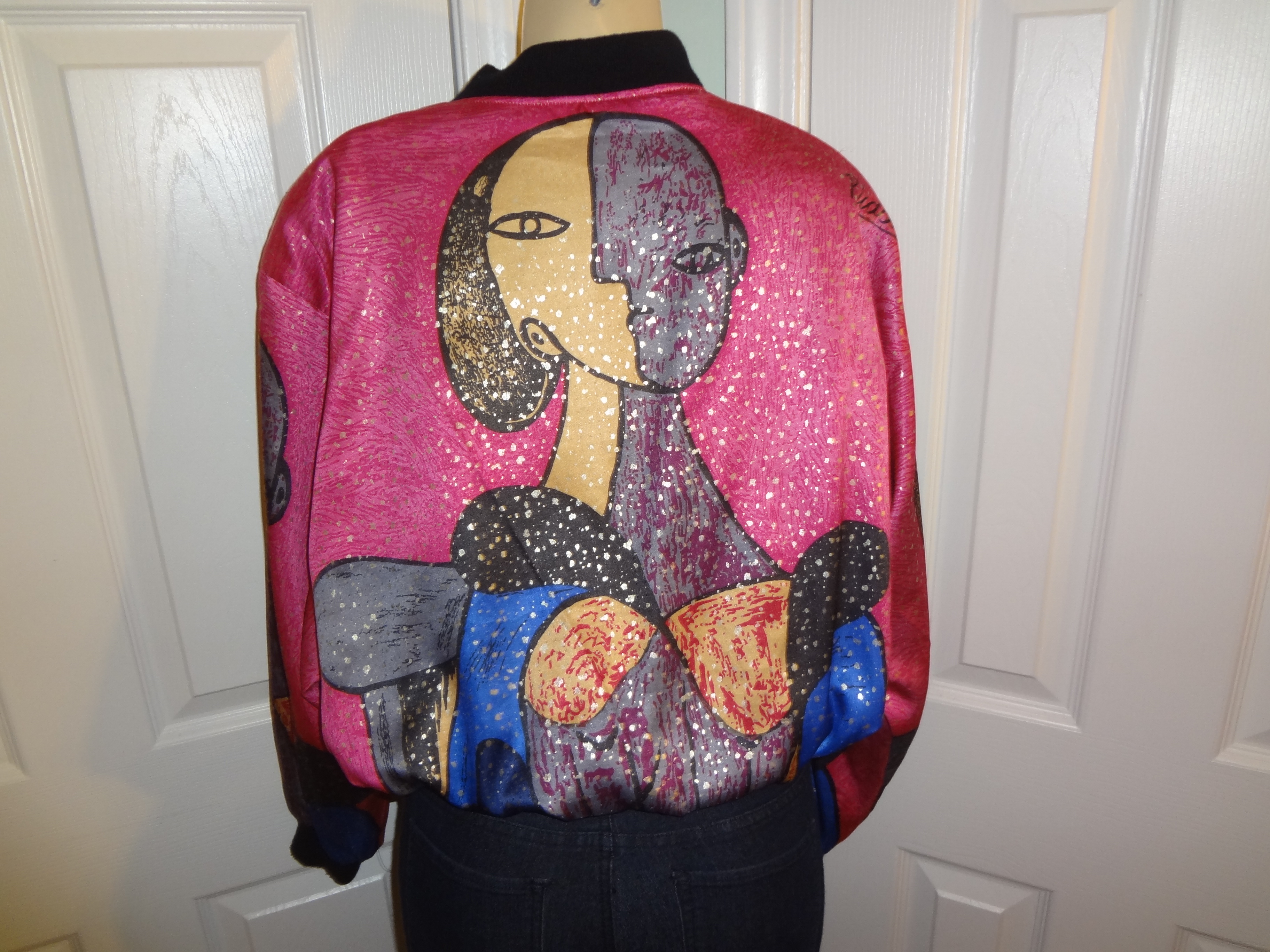 Vintage Mighty Pink Picasso Bomber Jacket Size XL
